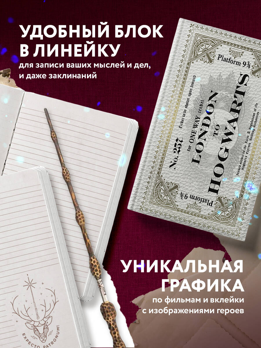 Вы уже получили свою сову из Хогвартса? Прекрасно! Невероятно быстрый «Хогвартс-экспресс» уже на всех парах мчит к платформе 9 и ¾, и это означает только одно - мы возвращаемся в чудесный и загадочный мир Гарри Поттера! В лимитированной коллекции "Back to Hogwarts" найдется все, что нужно начинающему волшебнику - блокноты, скетчбуки, закладки, значки и не только. Истинным гриффиндорцам придется по душе их практичность, эстеты со Слизерина оценят утонченное оформление, умники и умницы с Когтеврана останутся довольны содержанием, а добродушные пуффендуйцы обязательно найдут среди них что-то особенное в подарок лучшему другу. Магические свойства блокнота: - Удобный блок в линейку - подойдет для записи ваших мыслей и дел, и даже заклинаний. - Внутри уникальная графика по фильмам, а также множество вклеек с изображениями любимых героев. - Переплет выполнен из прочной экокожи. - Станет идеальным подарком для себя или близкого человека.| Издательство | ООО "Издательство "Эксмо" |