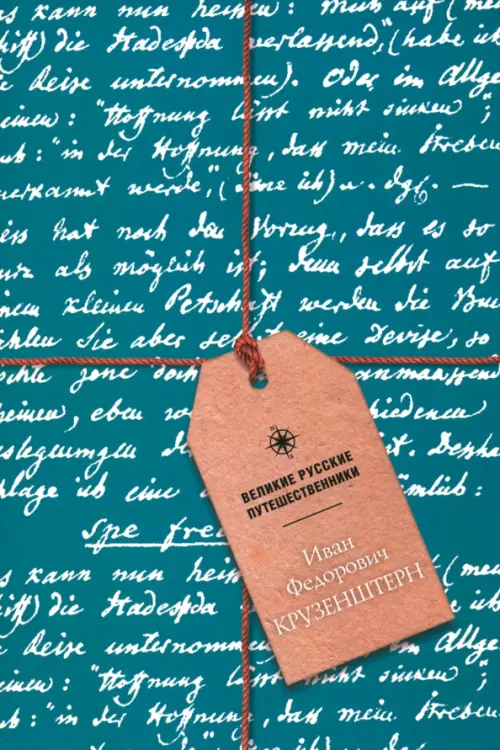 Блокнот «Иван Федорович Крузенштерн», серия «Великие русские путешественники». Белые нелинованные листы, мягкая обложка, оформленная рукописными фрагментами записки (1807 г.) путешественника по поводу фамильного герба. На 2-й стр. обложки - краткая биография Крузенштерна.