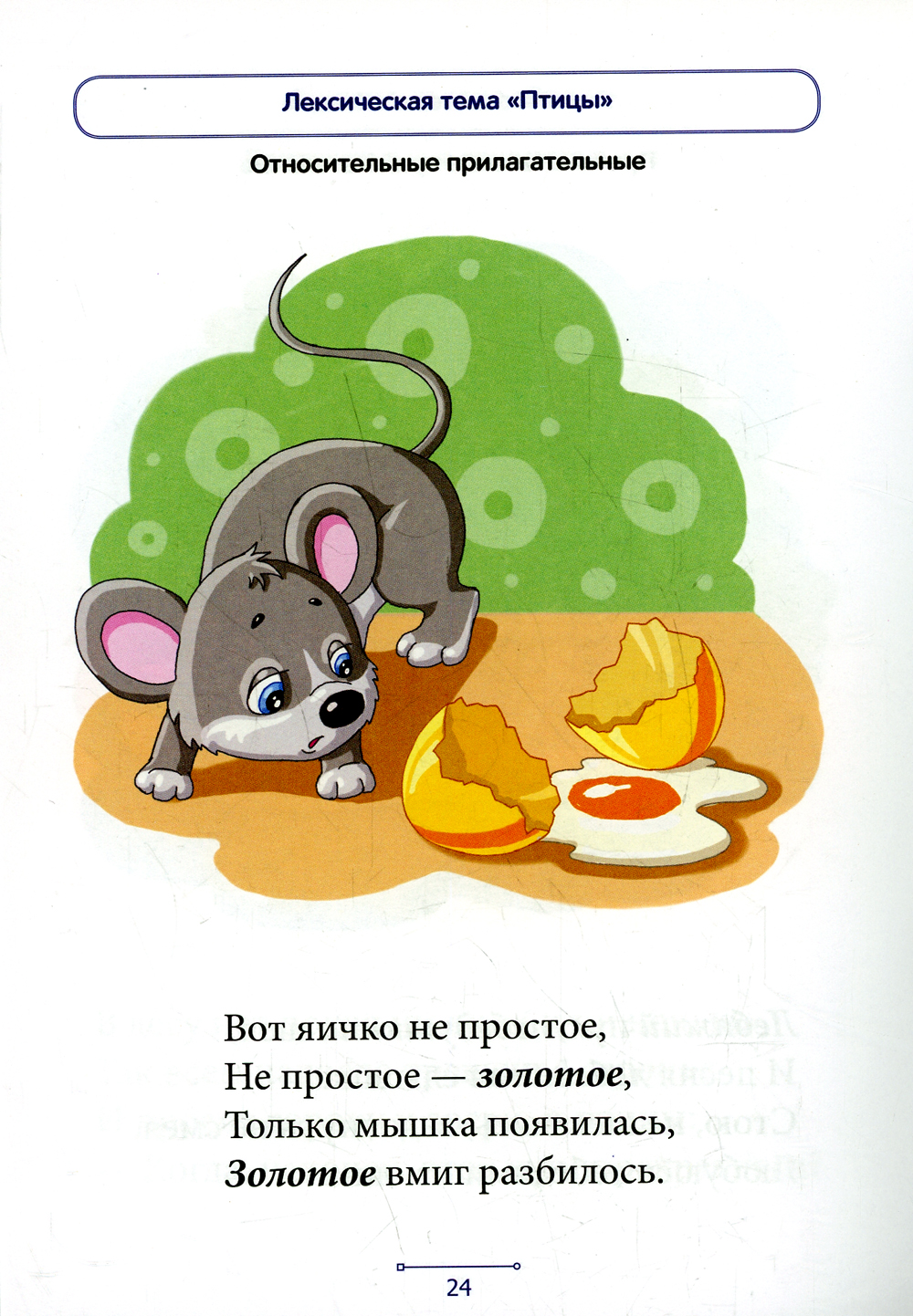 В блокноте представлены веселые стишки, которые помогут дошкольникам усвоить способы образования относительных и притяжательных прилагательных, а значит, сделать речь образной и богатой. Данный способ словообразования отрабатывается при изучении нескольких лексических тем, названия которых указаны в верхней части каждой страницы. Приобретенные знания закрепляются в игровых заданиях. Рекомендовано учителям-логопедам и другим педагогам ДОУ, родителям дошкольников.| Издательство | Детство-Пресс |