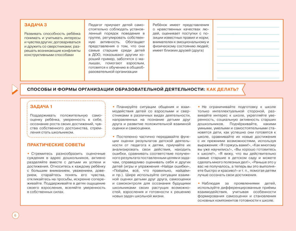 Блокнот педагога подготовительной группы детского сада предназначен для организации работы по образовательной области «Социально-коммуникативное развитие» в соответствии с Федеральной образовательной программой дошкольного образования (ФОП ДО). Каждый раздел блокнота содержит в себе копилку способов и приёмов взаимодействия, игры, образовательные ситуации, тематики бесед, проектов для детей подготовительной группы. Пособие нацелено на помощь педагогу в работе с детьми 6-7 лет и является дополнением к книге «Дошкольное образование. Путеводитель для педагога».| Издательство | Просвещение |