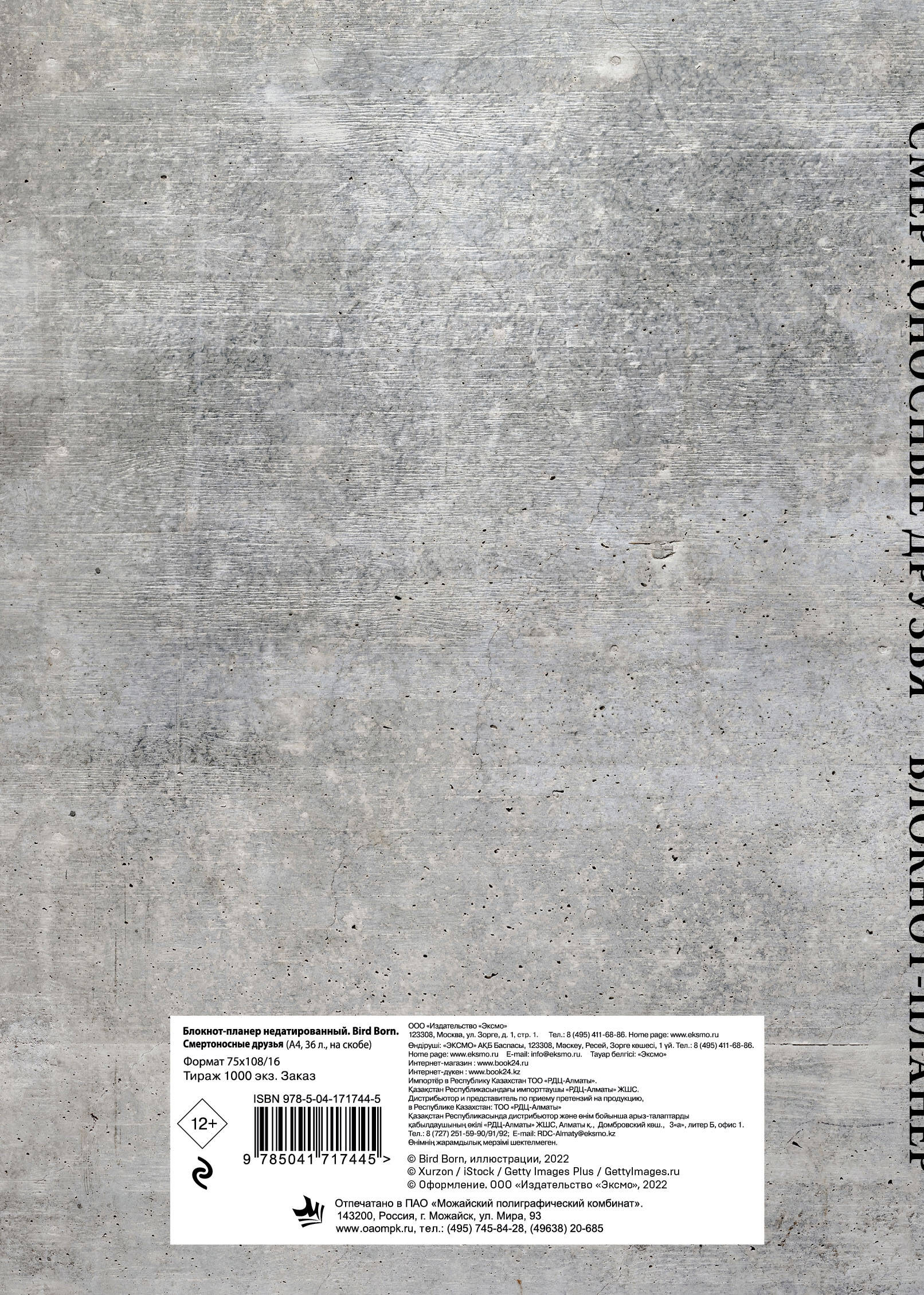 Аннотация: Блокнот-планер недатированный. Bird Born. Смертоносные друзья (А4, 36 л., на скобе)