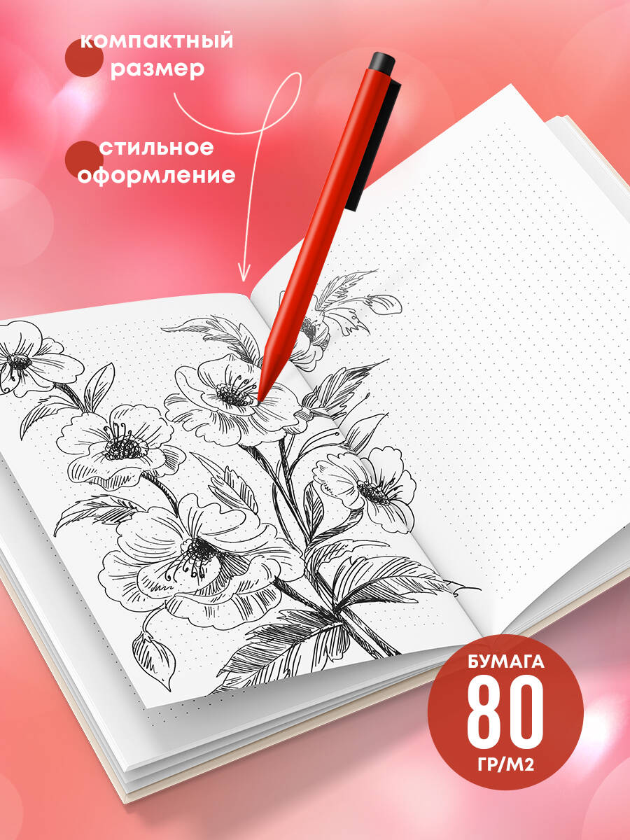 Стильный блокнот в компактном формате станет вашим надежным спутником на рабочем месте, в стенах университета или школы, а также в путешествиях или на прогулке в парке. Он создан для того, чтобы вы могли записывать свои цели и планы, делать удивительные зарисовки, фиксировать новые идеи и воплощать в слова все, что придет на ум. Блокнот в точку - ваш идеальный помощник, который окружит вас эстетикой и привнесет атмосферу умиротворения и гармонии, несмотря на любое напряжение вокруг. Для кого: - Для учащихся или работающих. - Для любителей необычной канцелярии. - Для ценителей красоты в мелочах. Фишки: - В линейке блокнотов вы найдете множество оформлений обложек. Общее у них лишь одно: актуальность и стиль. - Формат А5 выбран с учетом пожеланий пользователей: блокнот удобно брать с собой куда угодно. - 128 страниц из плотной белой бумаги. - Блок в точку идеально подходит для планирования и творчества.| Издательство | ООО "Издательство "Эксмо" |