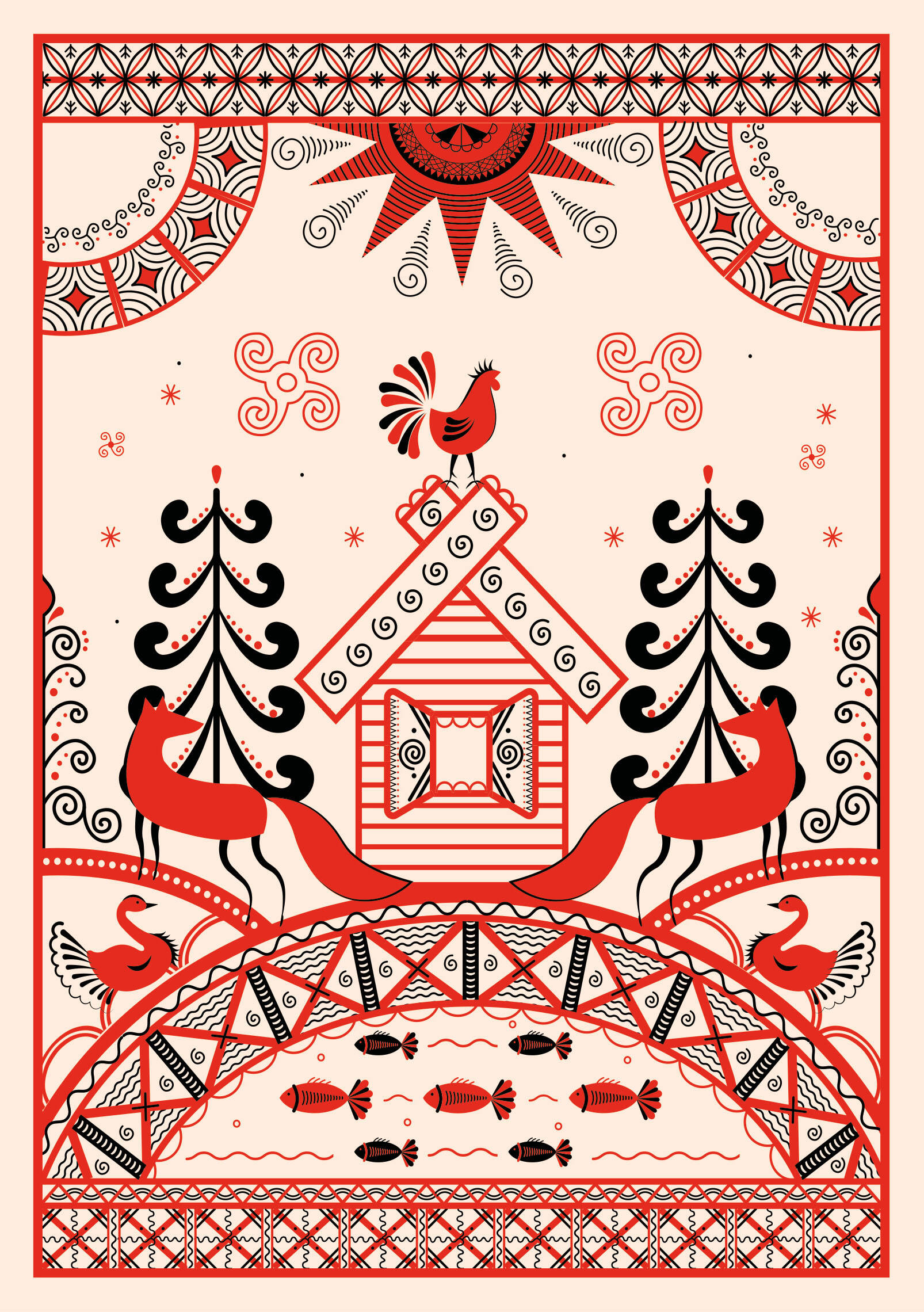 Блокнот Жили-были. Мезенская роспись «Лиса» (формат А5, 144 стр., блинтовое тиснение, тонированный блок)