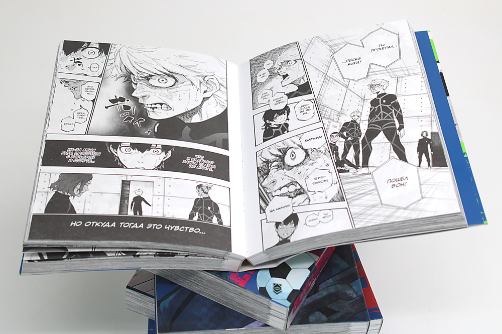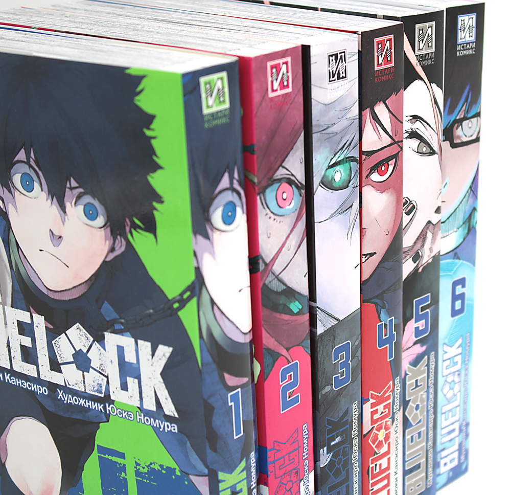 Комплект состоит из шести томов манги М. Канэсиро и Ю. Номуры «BLUE LOCK: Синяя тюрьма». В первом томе Япония покидает турнир, проиграв в 1/8 финала. Японский футбольный союз извлёк урок из очередного поражения и, нацелившись на победу в следующий раз, учредил «Синюю тюрьму» - специальный тренировочный комплекс, где собрались 300 подающих надежды спортсменов-старшеклассников со всей страны. Их тренером назначен Дзимпати Эго - человек, уверенный, что японский футбол может спасти лишь эгоистичный нападающий-страйкер. Среди его подопечных - Ёити Исаги, бывший игрок обычной школьной команды, которому предстоит пройти по головам врагов и друзей и воспитать в себе эго, способное исполнить мечту целой страны! Они уничтожат японский футбол... чтобы заставить его воспрять! Во втором томе первый отборочный этап в самом разгаре: отыграны 2 из 4 раундов. Одержав верх над хитроумным противником, Исаги и команда «Z» наконец-то распробовали вкус победы и теперь, укрепив свой боевой дух, ждут нового поединка. Они не подозревают, насколько опасный разлад уже зреет внутри их коллектива и как им воспользуются оставшиеся оппоненты - две сильнейшие команды в блоке №?5. Смогут ли герои одолеть столь грозных противников или их отчаянное сопротивление будет сломлено натиском чемпионов блока?! Вперёд, эгоисты! Ваше будущее в ваших руках! Каждый матч - игра ва-банк! На кону собственное будущее, а правило лишь одно: побеждай! В третьем томе в матче против команды «V», так гордящейся непревзойдённым талантом своего лучшего игрока, Наги, команде «Z» удаётся свести счёт к ничьей. До конца второго тайма остаётся пятнадцать минут... Чтобы победить, им необходимо выйти за предел возможностей и полностью пересмотреть свою игру. Сможет ли Исаги понять, что за «проволoчки» мешают ему, и забить гол столь сильным противникам?! Превзойди себя и нанеси удар по воротам своим новым оружием! Только эволюция! Только удар! Только победа! Для страйкера нет иных вариантов! Книга 3 включает в себя пятый и шестой тома манги. В четвертом томе во время «Битвы за соперников» команда Исаги проигрывает трём лучшим страйкерам «Синей тюрьмы» и лишается Батиры. Теперь, чтобы пройти дальше, им нужно дать толчок своему развитию... В новом матче двое на двое, который проверит их индивидуальные способности, соперником выступит лучший бомбардир пятого блока из первого этапа - Сёэй Баро. На этот раз один из проигравших покинет «Синюю тюрьму». Исаги жаждет одолеть «короля» Баро один на один и перейти на «территорию гениев»! Если тебе забили гол - забей в ответ! Если твою победу украли - отвоюй обратно! Книга 4 включает в себя седьмой и восьмой тома манги. В пятом томе Баро «пробудился» - и команда Исаги одержала победу! Из троих соперников они выберут лишь одного... А затем уже вчетвером наконец-то снова сойдутся в поединке с забравшей Батиру командой лучших страйкеров! Кто этот пронизанный эгоизмом «монстр»?! Исаги выступает против Рина Итоси - самого талантливого игрока «Синей тюрьмы»! Вперёд, тройка лучших страйкеров! Матч четыре на четыре начинается! Книга 5 включает в себя оригинальные тома 9 и 10. В шестом томе второй отборочный этап - «Битва за соперников» - завершён! И точку в финальной отчаянной схватке ставит гений Рин Итоси! Команда Исаги проигрывает, но он сам проходит дальше - выбирают именно его. Исаги 