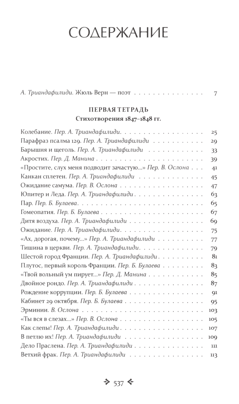 Поэзия Жюля Верна не была известна даже французскому читателю вплоть до 1989 года, когда в Париже состоялась подлинная литературная сенсация - публикация двух тетрадей оригинальных стихов из хранящегося в Нанте личного архива писателя. Со страниц этого издания всемирно известный автор научно-фантастической и приключенческой прозы предстал перед читающей публикой в новом, незнакомом ей образе. В настоящем издании собран, на языке оригинала и в русском поэтическом переводе, практически полный, за исключением несущественных фрагментов и набросков, корпус поэтических текстов Жюля Верна: юношеская лирика, стихи зрелой поры, романсы и стихотворные вставки в романы. Над книгой работал коллектив переводчиков, сотрудничающих с сайтом «Век перевода», основателем и руководителем которого был Е.В. Витковский. Составителем и автором предисловия выступил А. Н. Триандафилиди. Публикация полного поэтического наследия Жюля Верна осуществляется впервые в России.| Издательство | Престиж Бук |