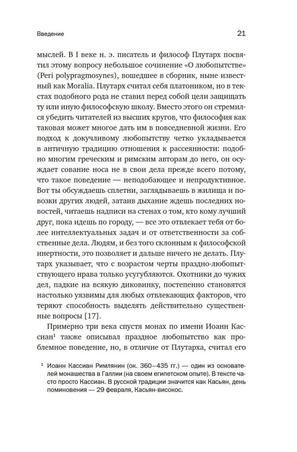 Каждый день мы неизбежно сталкиваемся с вызовами, которые бросает нам эпоха высоких технологий: заключенные в цифровую оболочку, окруженные со всех сторон экранами и завороженные алгоритмическими лентами социальных сетей, мы сами не замечаем, как наше внимание все сильнее распыляется, а время утекает сквозь пальцы. В таких условиях умение концентрироваться на чем-то одном становится настоящей суперспособностью. Однако внимательность и сосредоточение непросто давались людям во все времена. Даже средневековые христианские монахи, мастера уединения и аскетизма, порой страдали от досадной рассеянности. В своем увлекательном тексте на грани фундаментального исторического исследования и селф-хелп литературы Джейми Крейнер рассказывает, что отвлекало монахов от праведного труда и как они упражняли свое внимание и память, а также делится секретами их продуктивности, актуальными и сейчас. «Жизнь средневековых монахов, разумеется, отличалась от нашей, и они видели причины своей рассеянности в других вещах, чем мы. Современные исследователи винят в ослаблении концентрации плохой сон, скуку, скверную культуру рабочего пространства и технологические триггеры, тогда как христианские монахи винили демонов, собственные недостатки, волю и первородное отщепление человечества от божественного. Но что у нас общего, так это зацикленность на проблеме внимания и убежденность, что предшественники справлялись с ней лучше» (Джейми Крейнер).| Издательство | КоЛибри |