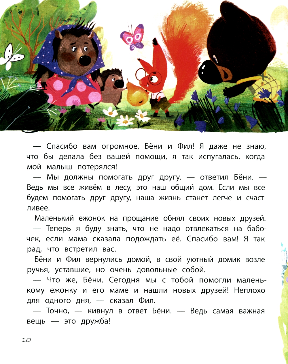 Медвежонок Бёни и бельчонок Фил - два лучших друга, которых объединяет стремление помогать всем вокруг и делать добрые дела. Что бы ни случилось в лесу, Бёни и Фил всегда готовы прийти на помощь.