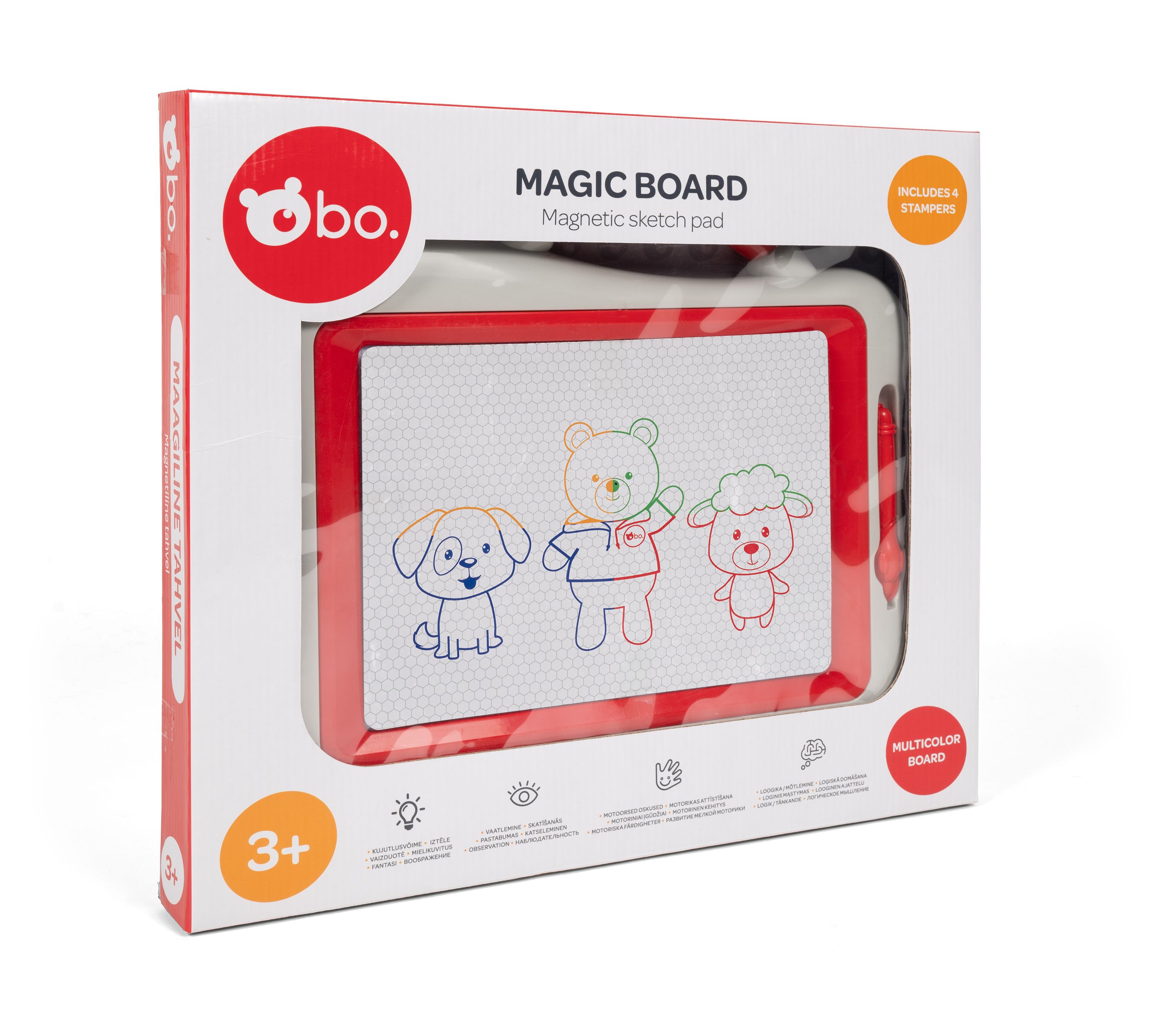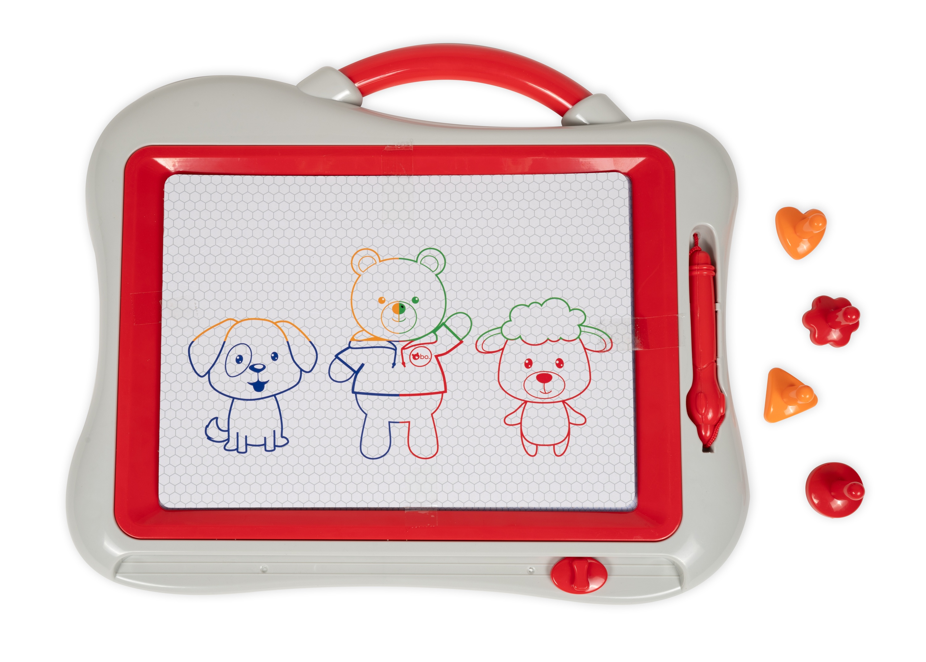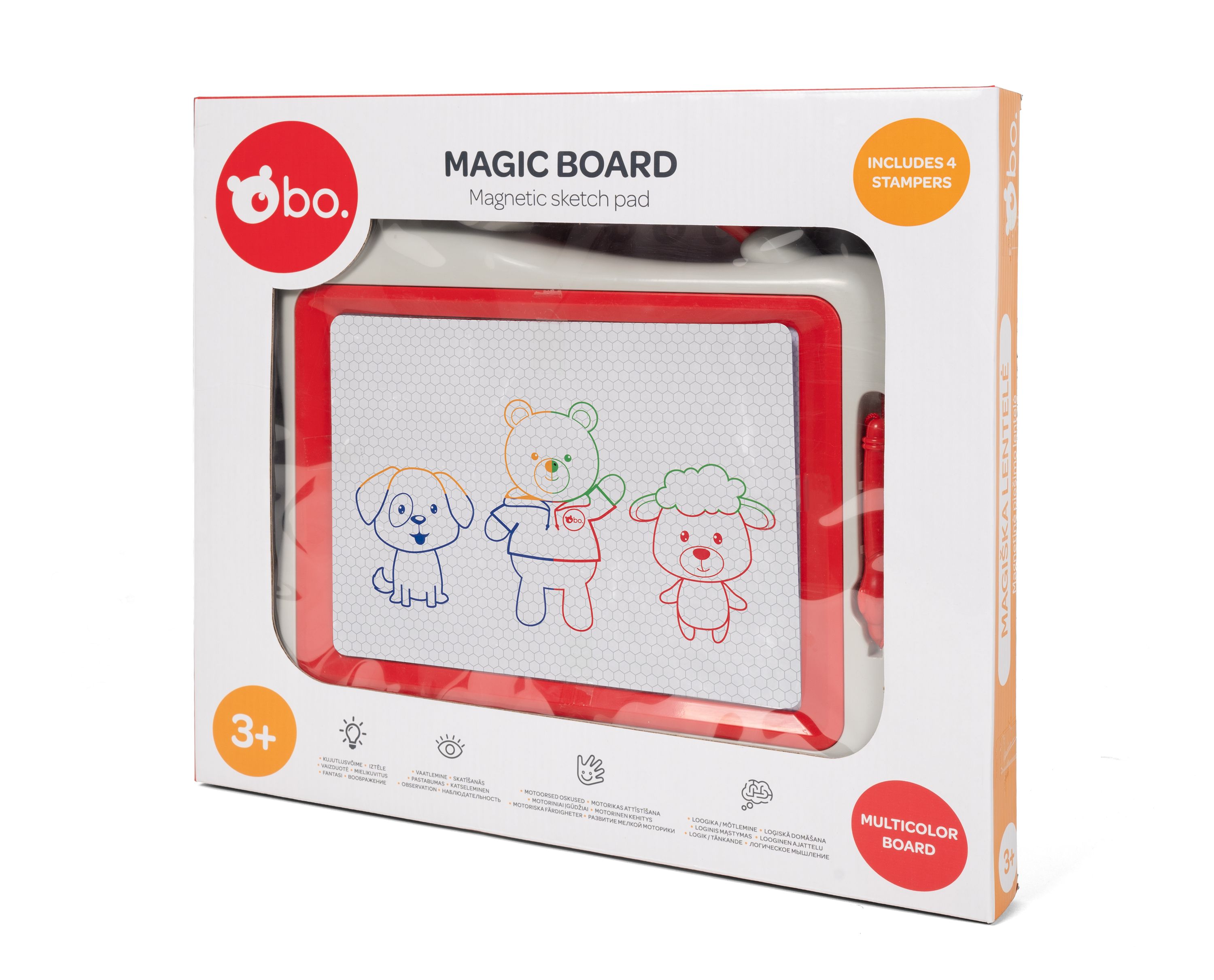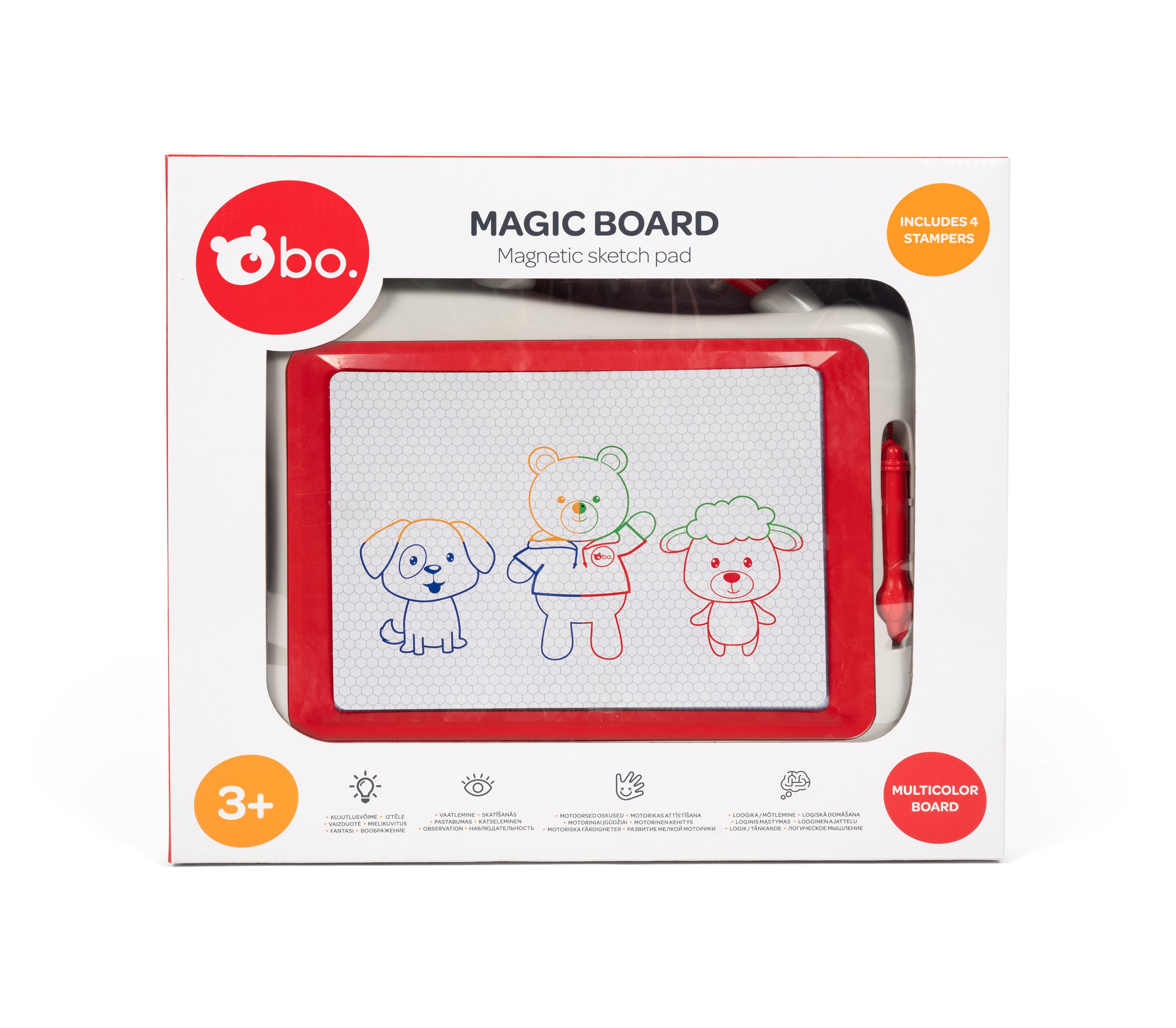 Эта магнитная доска для рисования bo. познакомит ребенка с миром искусства! Просто возьмите магнитный карандаш и начните рисовать, а затем сотрите рисунок несколькими движениями! Четыре магнитных штампа и четырехцветный фон сделают рисование еще более увлекательным! Размер 39x32 см