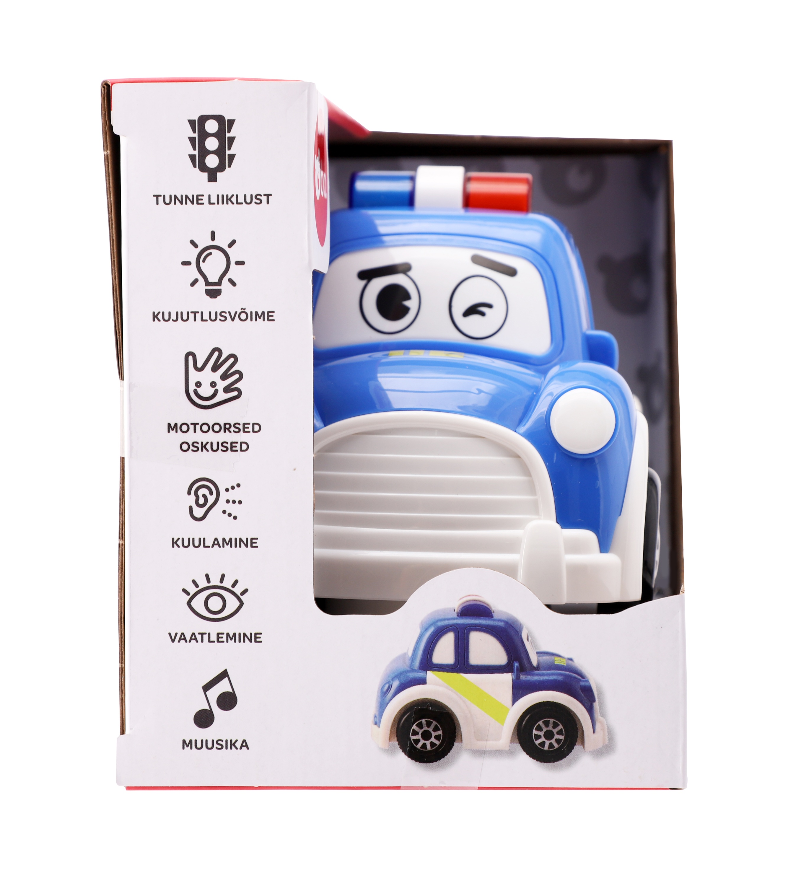 Эта интерактивная полицейская машина bo. станет идеальной первой машинкой для вашего малыша! Благодаря датчикам, машина будет продолжать двигаться, пока вы не остановите ее. Забавные звуки и световые эффекты делают ее интересной для маленьких детей. Нажмите на дверь, и машина начнет говорить по-эстонски! Нажмите на капот, и вы сможете послушать 4 эстонские песни - "Käänulised Teed", "Lõvi Leo", "Reisilaul" и "Tublilt Sõiduvees"!