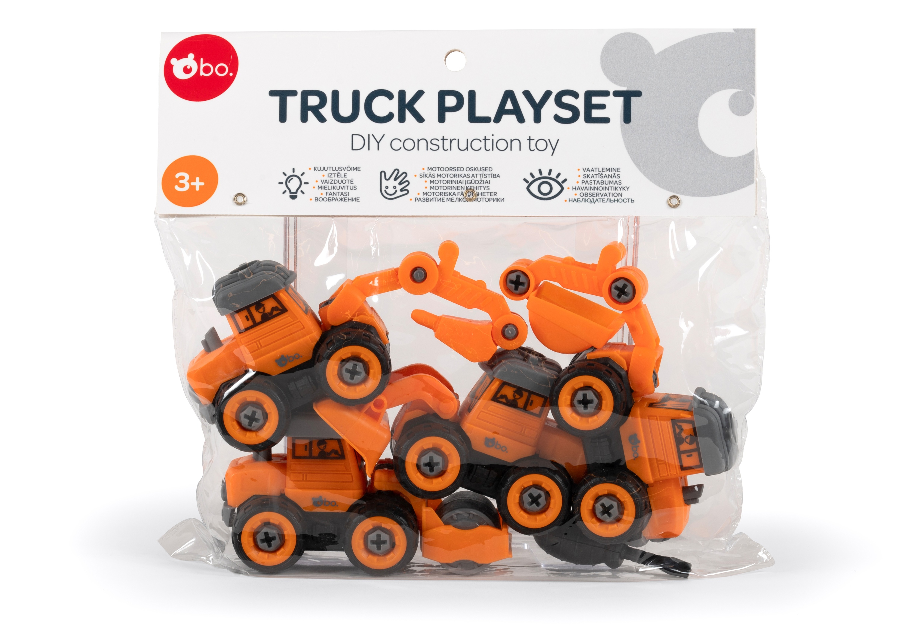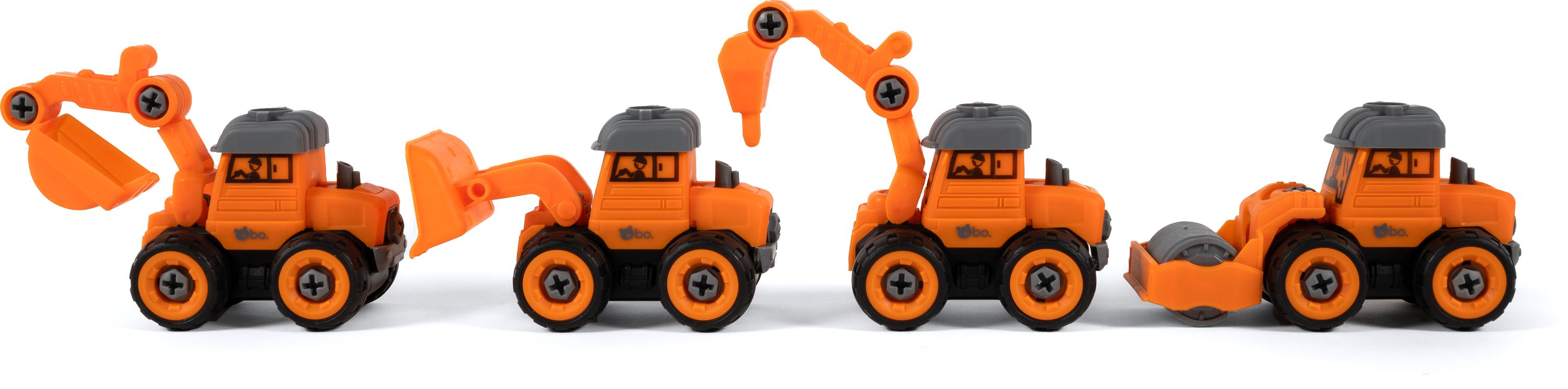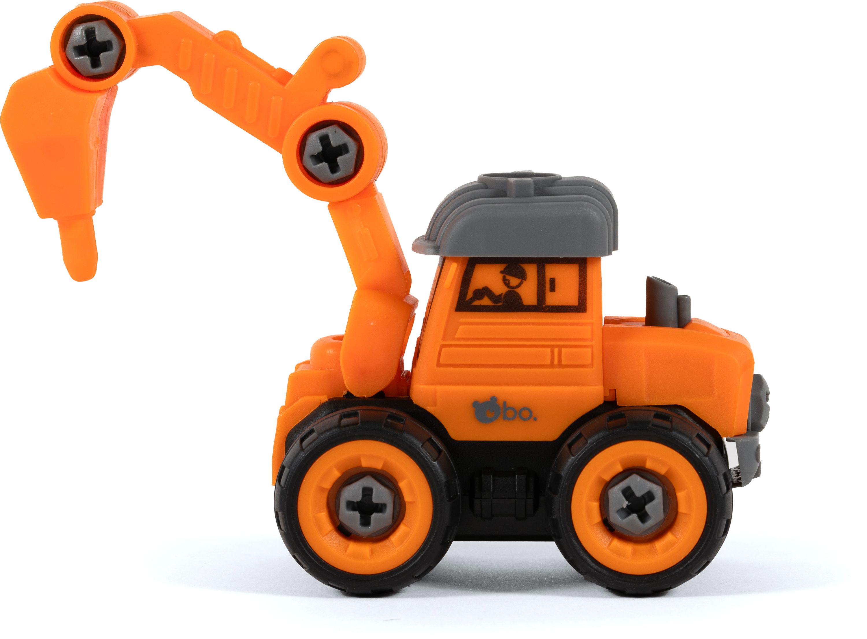Строй и собирай для бесконечно весёлой игры с новым игровым набором bo.construction! Каждый мини-грузовик состоит из 19+ деталей для сборки и игры! В комплекте 1 игрушечная отвертка.