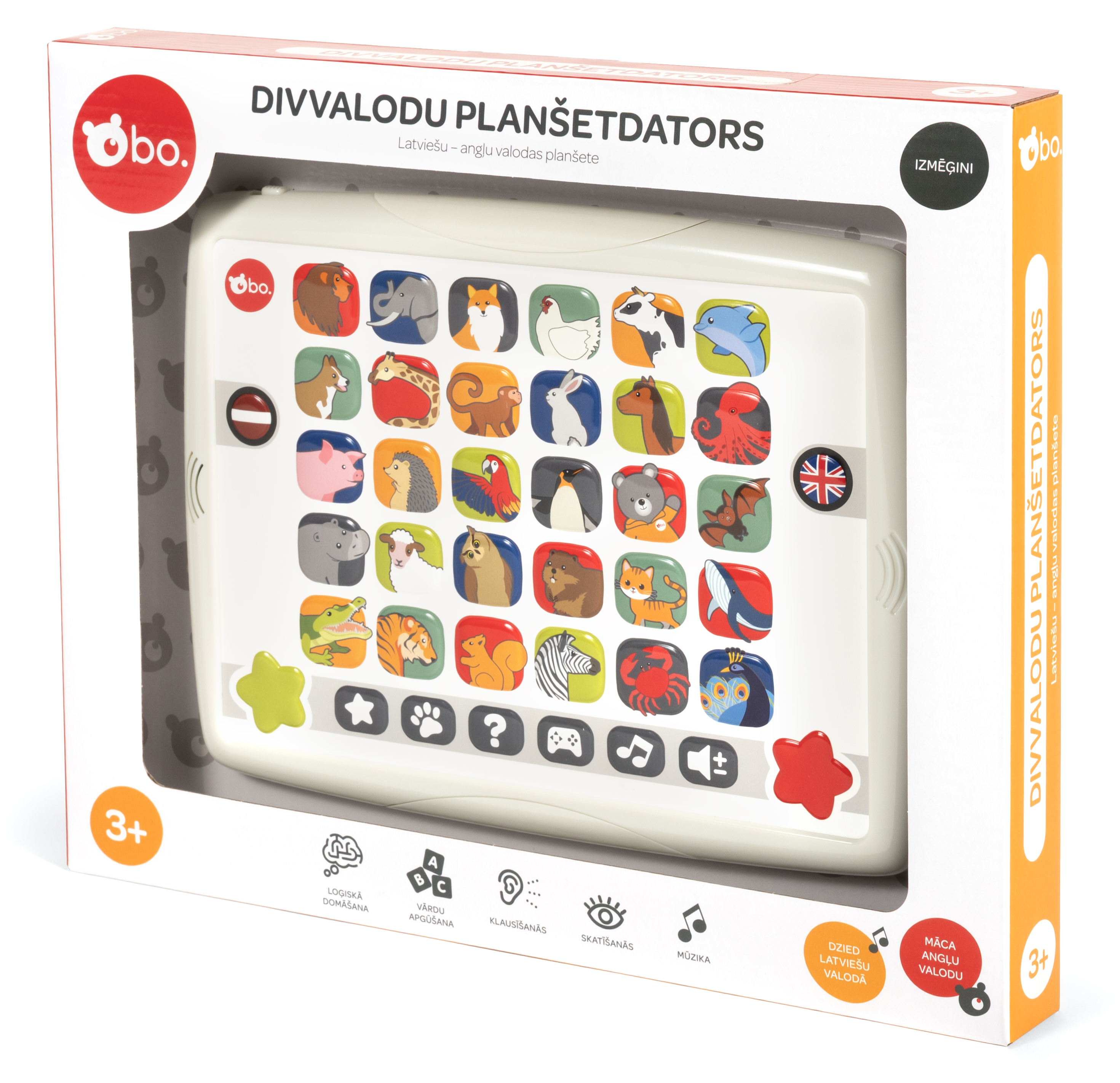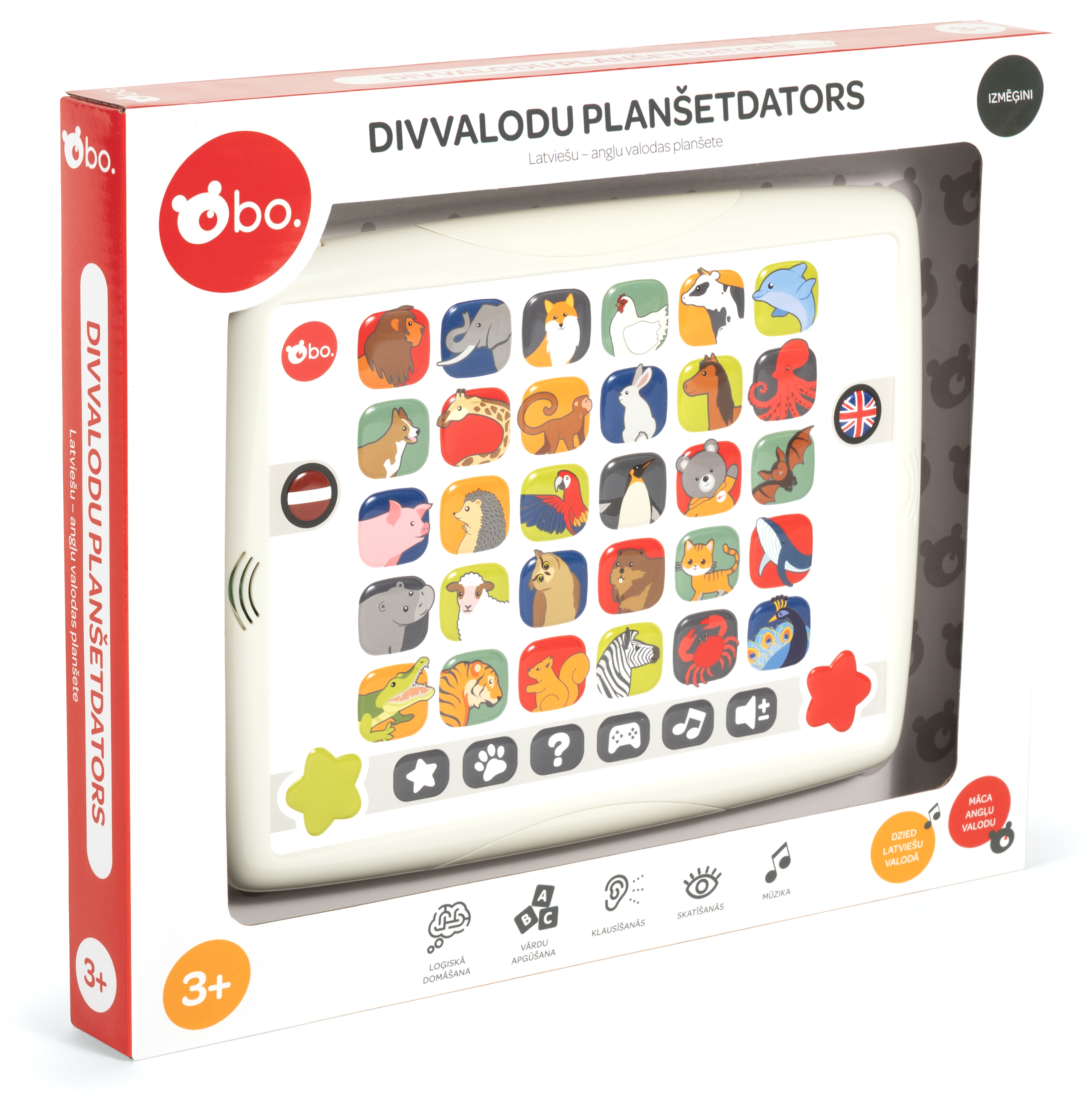 bo. Двуязычный планшет - идеальная игрушка для детей, чтобы выучить английский и латышский языки! С 6 увлекательными играми и 10 запоминающимися песнями на обоих языках, этот планшет делает изучение языка увлекательным. Это интересный способ для детей учиться и весело проводя время!