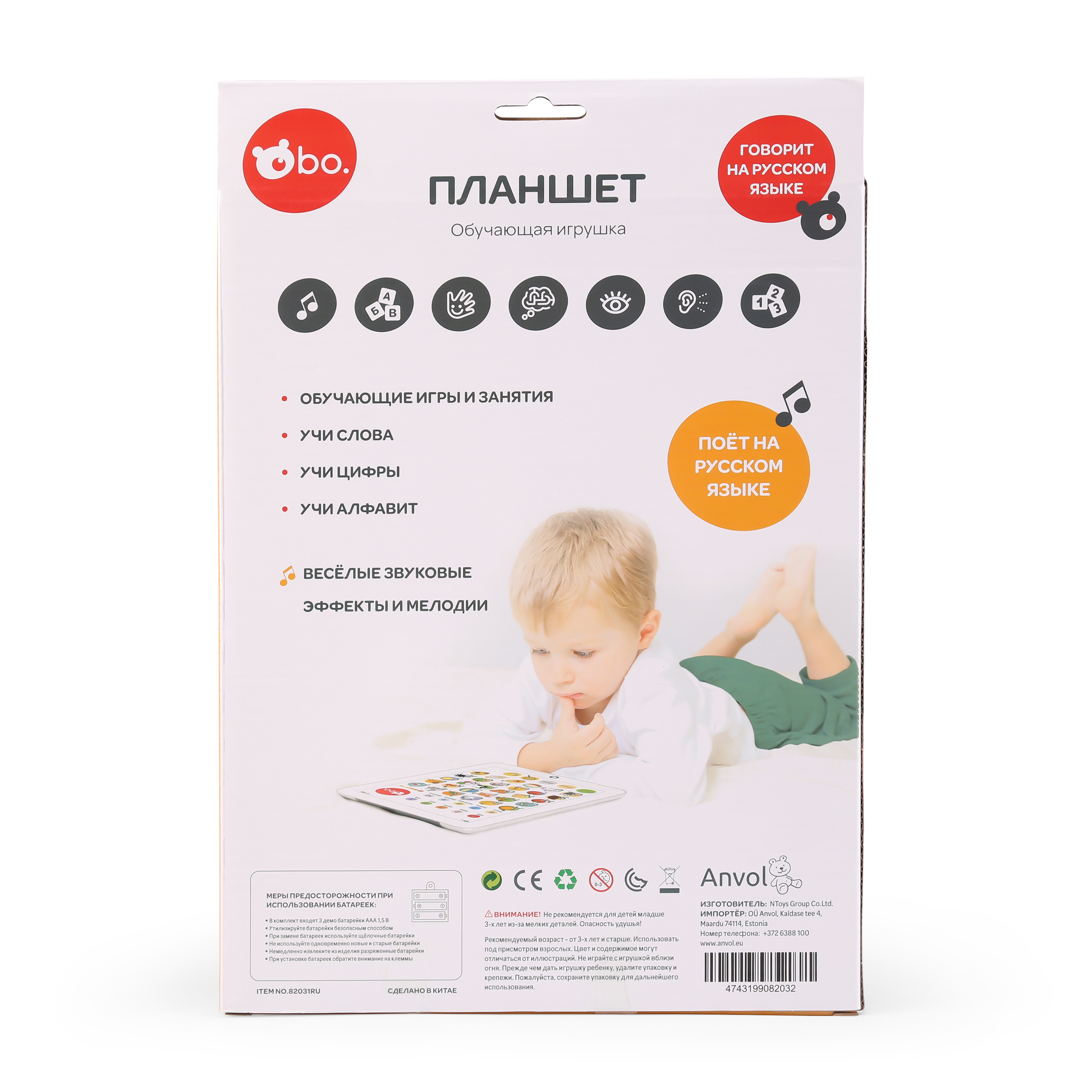 С этим развивающим планшетом bo., который говорит на русском языке, ваш ребёном сможет учить цифры, слова и алфавит! Включает в себя весёлую игру, где ребёнок должен будет найти правильное слово, цифру или букву! Нажав на музыкальный инструмент, заиграют весёлые детские мелодии!