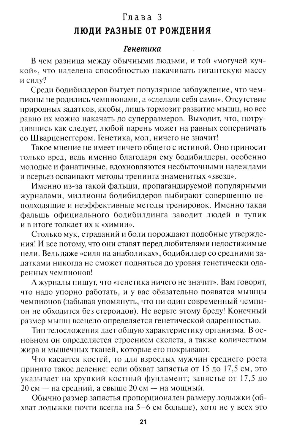 Эта книга полезна как новичкам в бодибилдинге, так и продвинутым атлетам. Первые найдут в ней базовые комплексы упражнений идеальные указания по методике тренировок. Вторым предназначена вся третья часть, где изложены новейшие системы атлетического тренинга. Особая ценность рекомендаций автора состоит в том, что он предлагает эффективные пути к вершинам бодибилдинга без употребления химической отравы (анаболических стероидов). Все рекомендации имеют серьезное научное обоснование.| Издательство | Харвест |