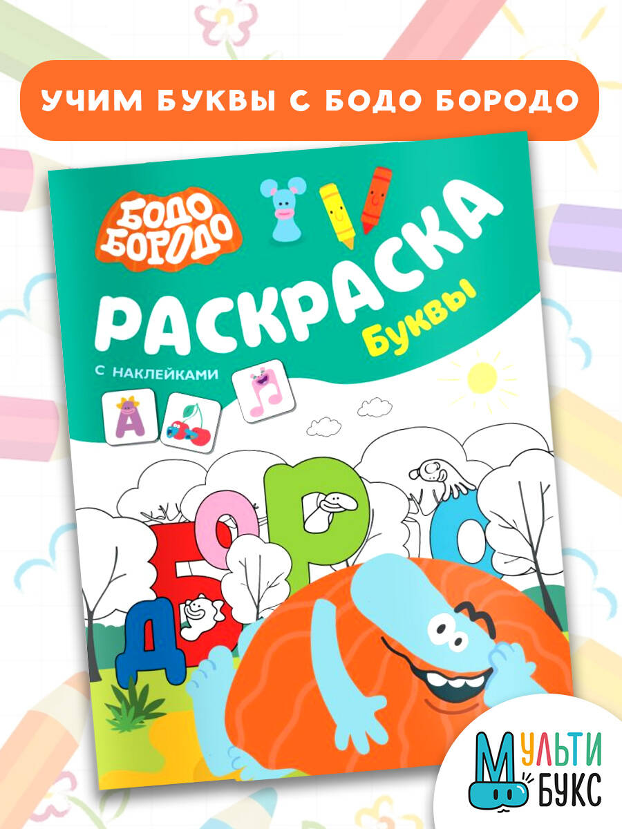 Аннотация: Бодо Бородо. Раскраска с наклейками. Буквы