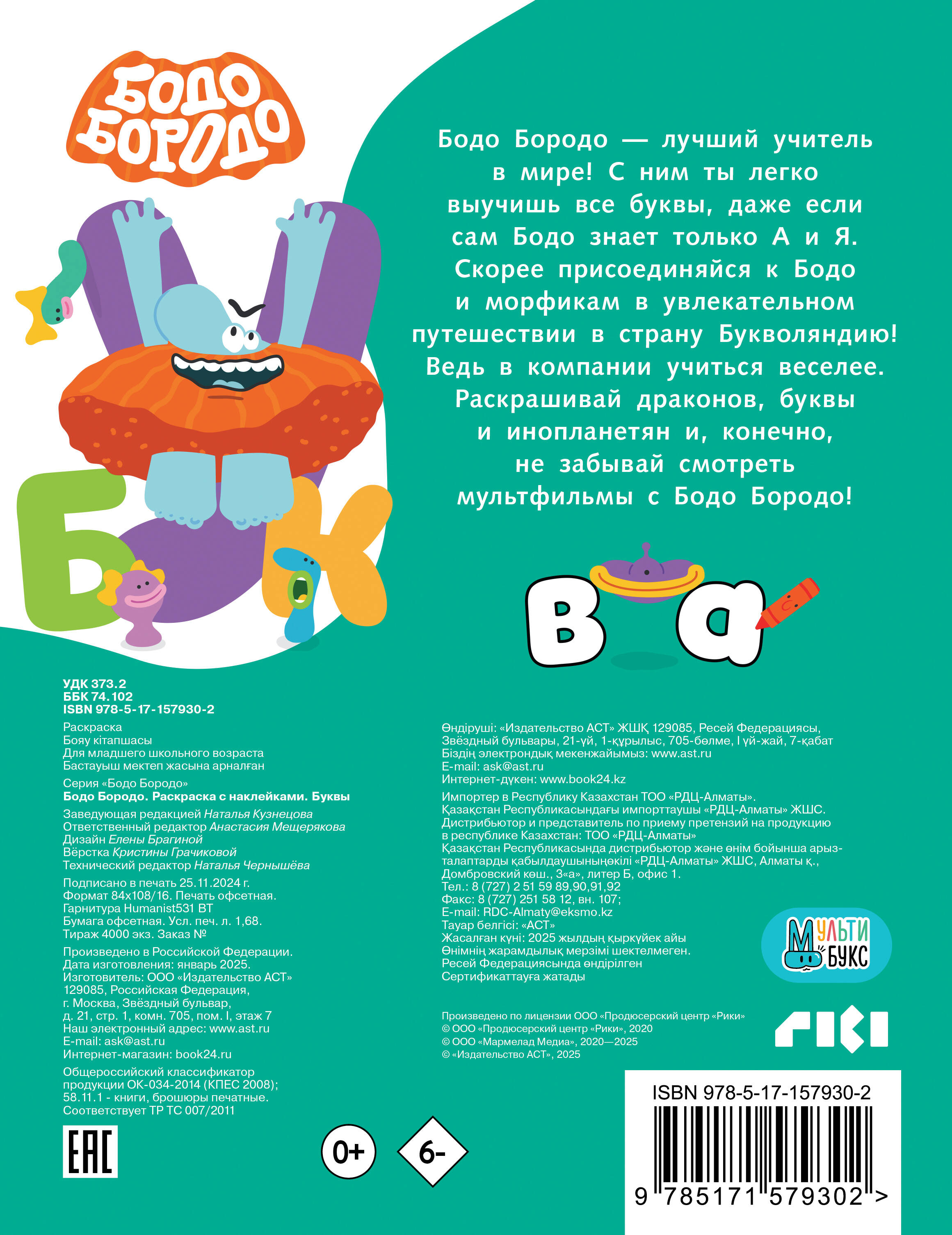 Бодо Бородо - лучший учитель в мире! С ним ты легко выучишь все буквы, даже если сам Бодо знает только А и Я. Скорее присоединяйся к Бодо и морфикам в увлекательном путешествии в страну Букволяндию! Ведь в компании учиться веселее. Раскрашивай драконов, буквы и инопланетян и, конечно, не забывай смотреть мультфильмы с Бодо Бородо! Для младшего школьного возраста.
