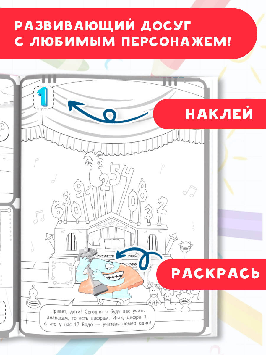 Бодо Бородо. Раскраска с наклейками. Цифры и числа от 1 до 15