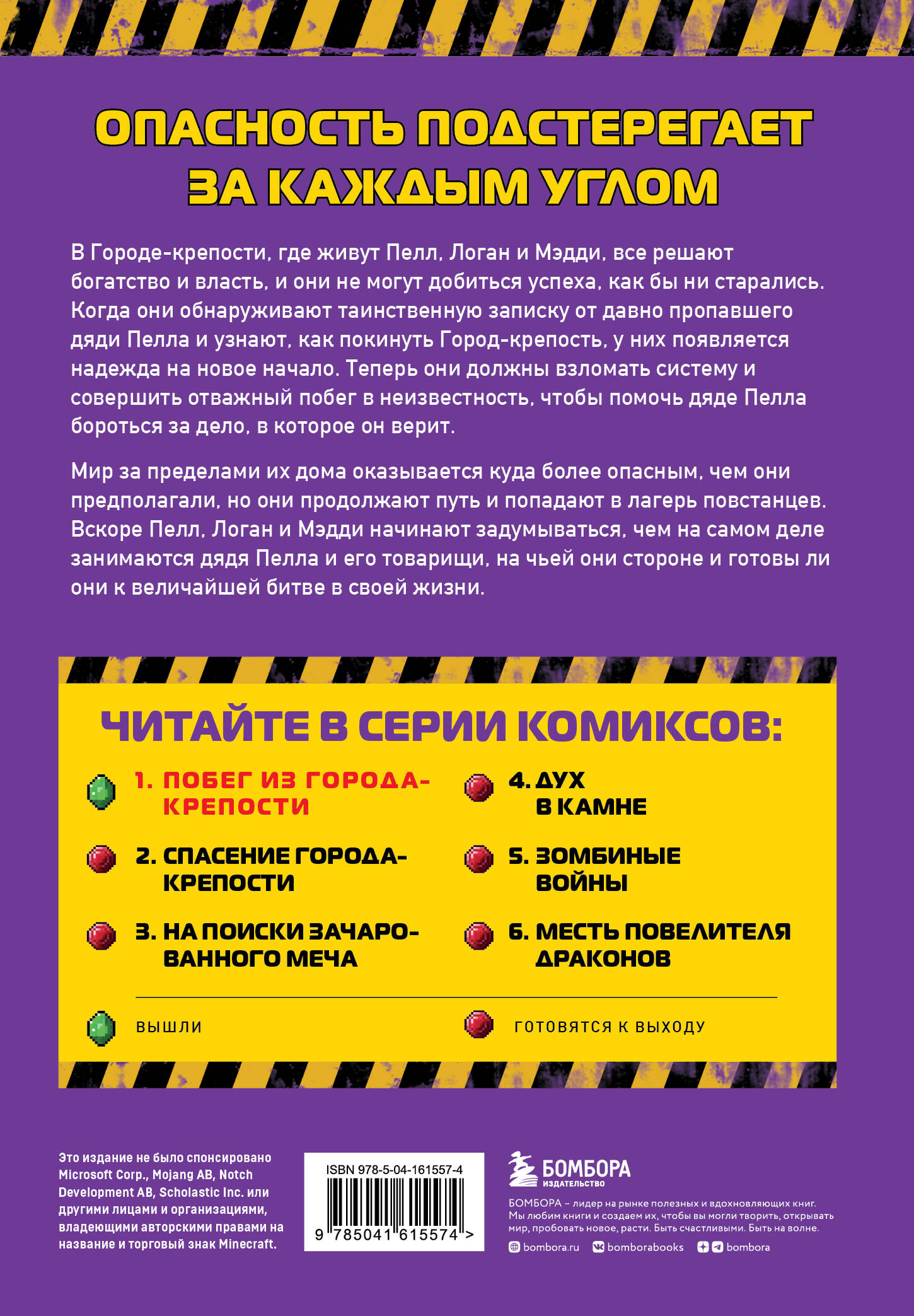 Новая серия комиксов о приключениях в популярной игре «Майнкрафт». В Городе-крепости, где живут Пелл, Логан и Мэдди, все решают богатство и власть, и они не могут добиться успеха, как бы ни старались. Когда они обнаруживают таинственную записку от давно пропавшего дяди Пелла и узнают, как покинуть Город-крепость, у них появляется надежда на новое начало. Теперь они должны взломать систему и совершить отважный побег в неизвестность, чтобы помочь дяде Колину бороться за дело, в которое он верит. Мир за пределами их дома оказывается куда более опасным, чем они предполагали, но они продолжают путь и попадают в лагерь повстанцев. Вскоре Пелл, Логан и Мэдди начинают задумываться, чем на самом деле занимаются дядя Пелла и его товарищи, на чьей они стороне и готовы ли они к величайшей битве в своей жизни.| Издательство | Эксмо |