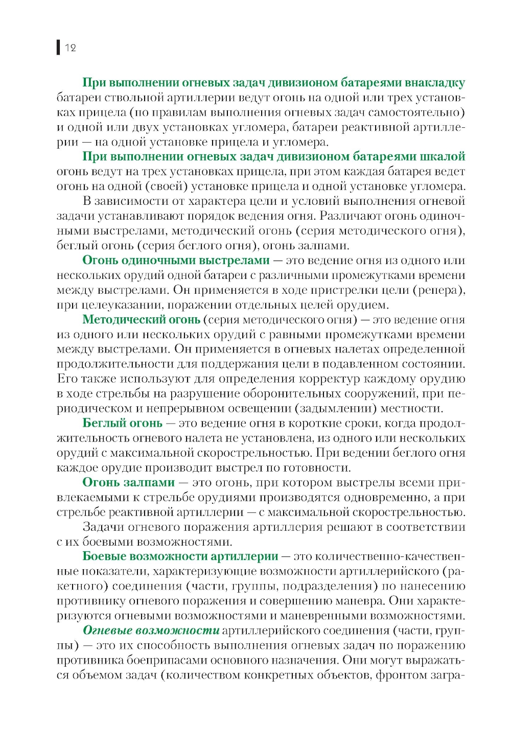 Изложены основные приемы и способы корректирования артиллерийского огня в различных условиях ведения современного общевойскового боя. Написано с учетом боевой практики и рекомендаций в изданной по данной тематике литературе. Отражены основные способы и практические действия при подготовке и в ходе выполнения огневых задач при корректировании артиллерийского огня, а также представлен теоретический материал для подготовки корректировщиков. Соответствует ФГОС ВО последнего поколения. Для военных учебных заведений, имеющих военные учебные центры.| Издательство | КноРус |