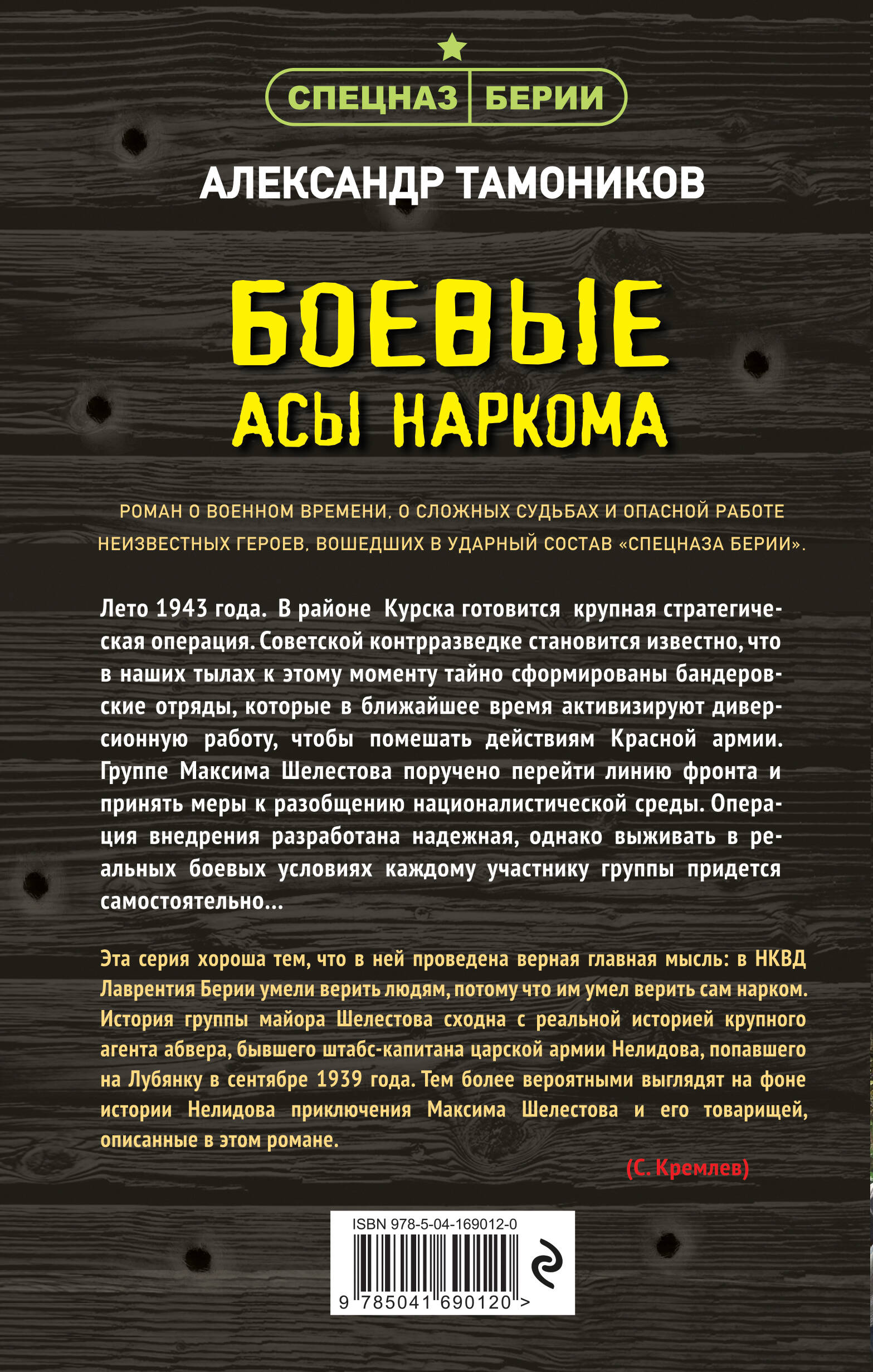 Роман о военном времени, о сложных судьбах и опасной работе неизвестных героев, вошедших в ударный состав «спецназа Берии». Общий тираж книг А. Тамоникова - более 10 миллионов экземпляров. Лето 1943 года. В районе Курска готовится крупная стратегическая операция. Советской контрразведке становится известно, что в наших тылах к этому моменту тайно сформированы бандеровские отряды, которые в ближайшее время активизируют диверсионную работу, чтобы помешать действиям Красной Армии. Группе Максима Шелестова поручено перейти линию фронта и принять меры к разобщению националистической среды. Операция внедрения разработана надежная, однако выживать в реальных боевых условиях каждому участнику группы придется самостоятельно… ------------------------------ «Эта серия хороша тем, что в ней проведена верная главная мысль: в НКВД Лаврентия Берии умели верить людям, потому что им умел верить сам нарком. История группы майора Шелестова сходна с реальной историей крупного агента абвера, бывшего штабс-капитана царской армии Нелидова, попавшего на Лубянку в сентябре 1939 года. Тем более вероятными выглядят на фоне истории Нелидова приключения Максима Шелестова и его товарищей, описанные в этом романе». - С. Кремлев| Издательство | ООО "Издательство "Эксмо" |