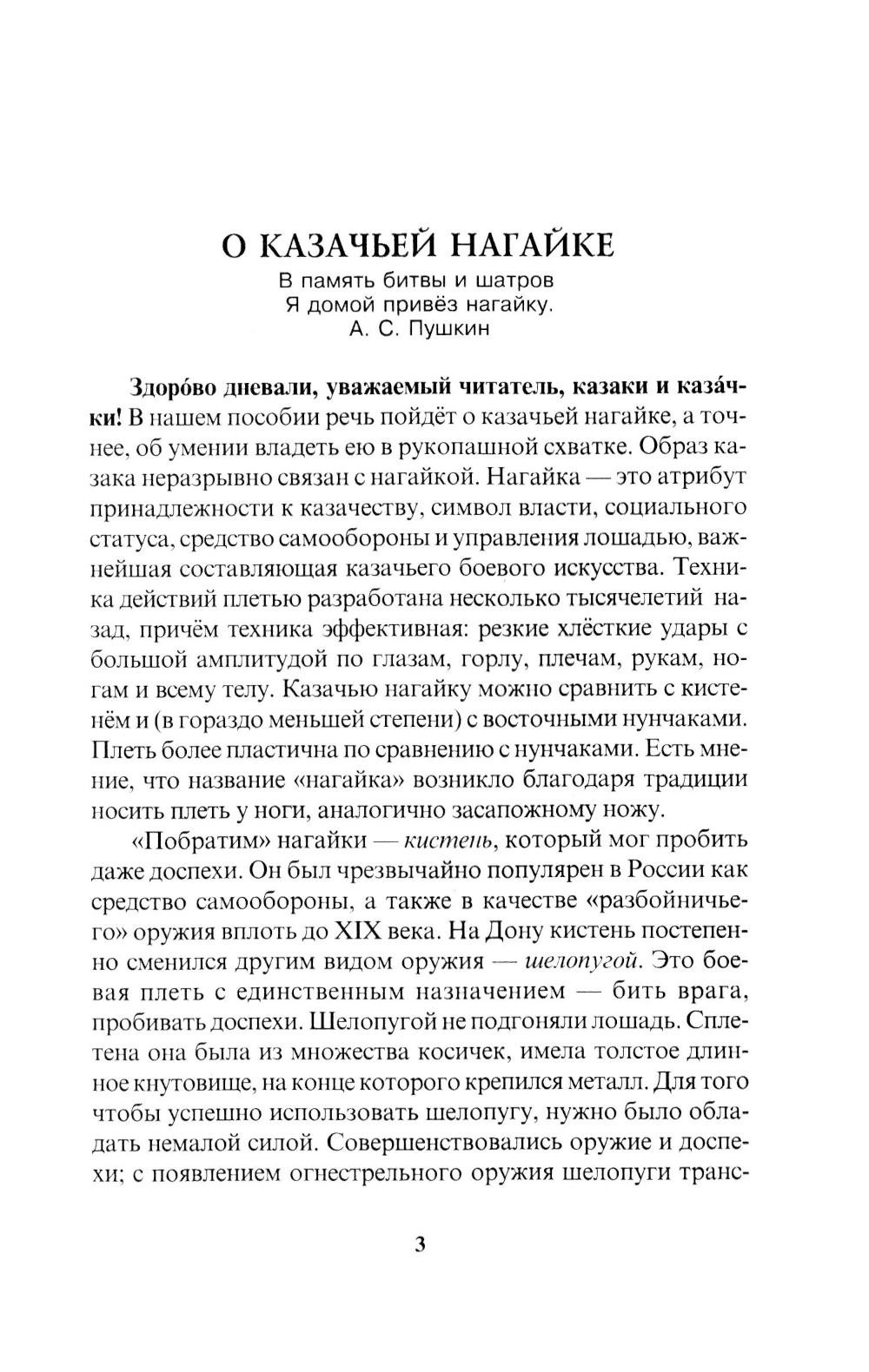 В данном учебно-методическом пособии представлена техника владения казачьей нагайкой в рукопашной схватке. Образ казака неразрывно связан с нагайкой. Нагайка - это атрибут принадлежности к казачеству, символ власти и социального статуса, средство самообороны и управления лошадью, важнейшая составляющая казачьего боевого искусства. Показаны основы освоения техники владения нагайкой в рукопашной схватке, затронуты история и традиции воинских искусств казаков, представлена история Сибирского казачества. Целый раздел посвящен теории и методике освоения приёмов и действий. Пособие адресовано казакам, а также всем, кто интересуется отечественными боевыми искусствами.| Издательство | Профит Стайл |