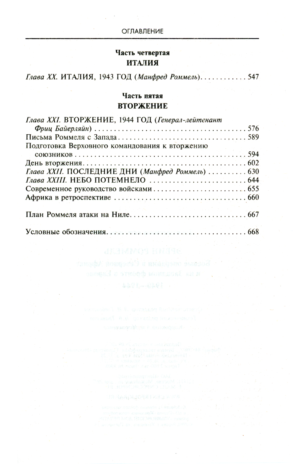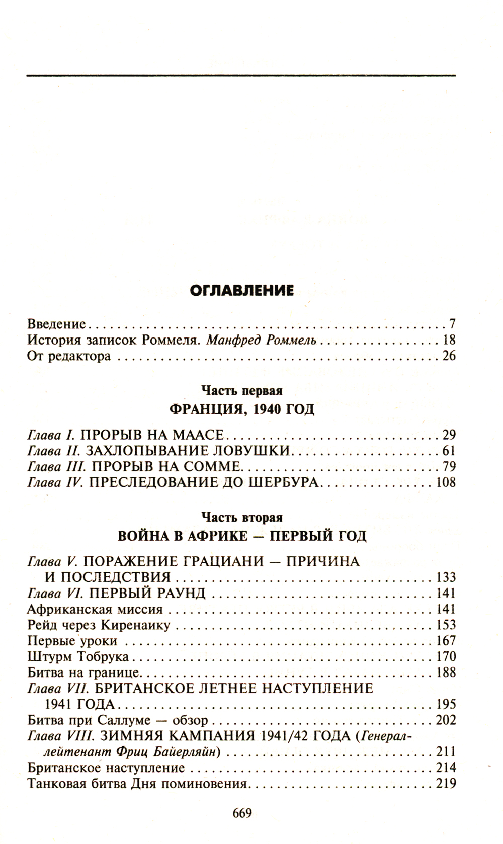 После смерти Роммеля в 1944 г. остались архивы, в которых немецкий полководец записал историю своей драматической карьеры и подробности совершенных им военных кампаний. Каждый вечер Лис Пустыни, как прозвали его англичане, диктовал беглый рассказ о событиях дня, а после каждой битвы - подводил итоги ее хода и уроков, которые следует из нее извлечь. Почти ежедневно он писал жене откровенные письма, в которых выражал личное отношение к происходящему на фронтах, а затем и свои печальные предчувствия. Кроме того, он продемонстрировал свой взгляд на союз оси и на внутренний механизм работы высшего командования фюрера. Сын Роммеля Манфред добавил к запискам отца рассказ о последних неделях жизни фельдмаршала вплоть до момента, когда ему по приказу Гитлера был предоставлен выбор: почетное самоубийство или позорный суд за измену.| Издательство | Центрполиграф |