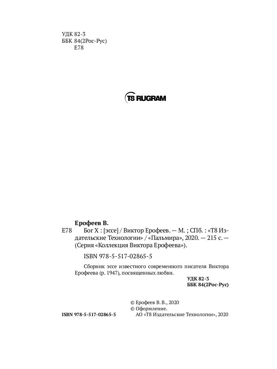 Сборник эссе известного современного писателя Виктора Ерофеева (р. 1947), посвященных любви.| Издательство | Т8 RUGRAM |