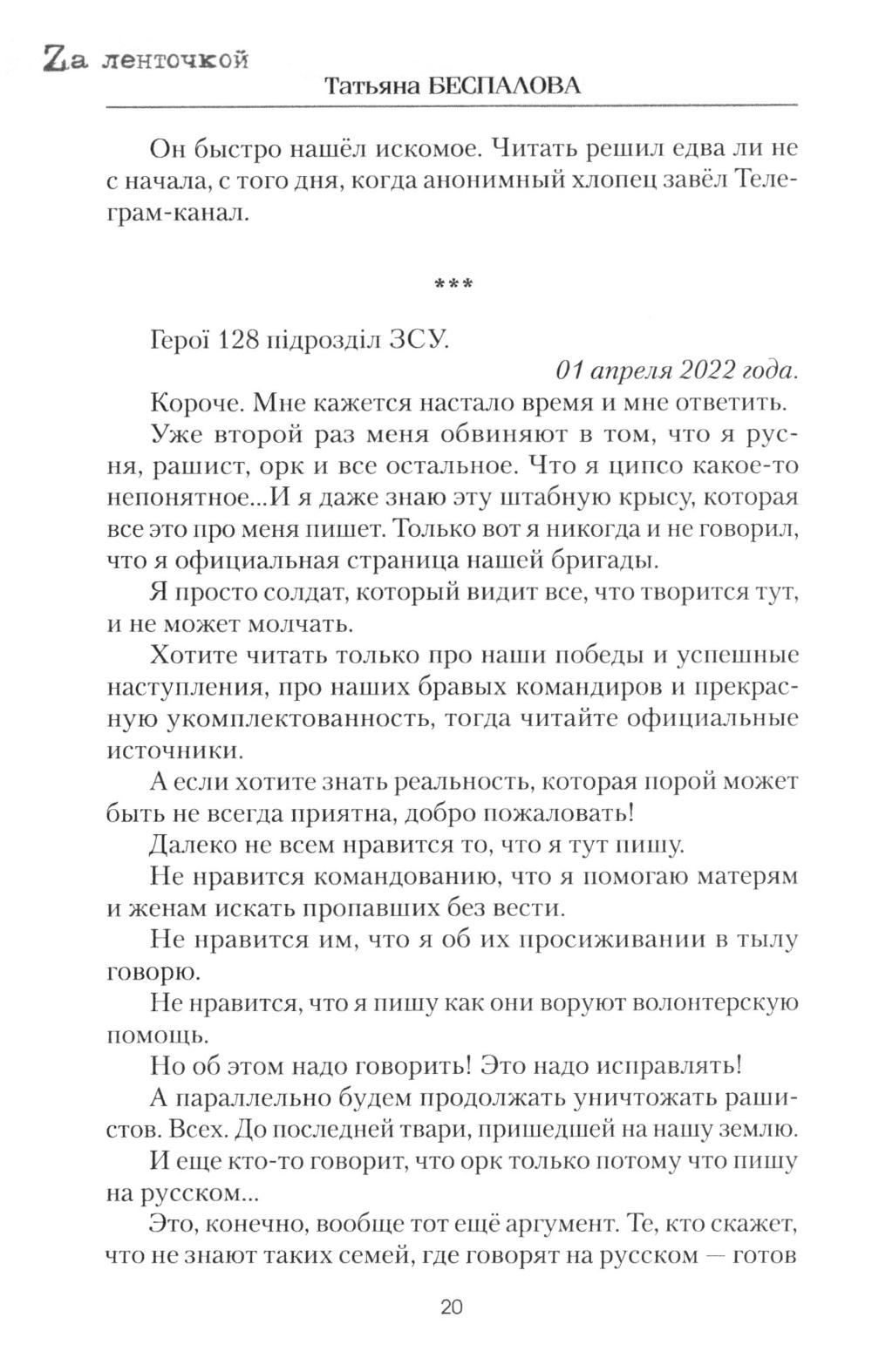 В основе нового романа Татьяны Беспаловой лежат судьбы трех братьев, пересекающиеся в огне Донбасса. Старший вырос в Херсоне. Двое других - в Москве. Судьба сводит их вместе в ноябре 2022 года на руинах шахтёрского городка N в «серой зоне», по разные стороны линии боевого соприкосновения. Едва узнав о своем родстве, они были готовы вцепиться друг другу в глотку, но голос крови оказался сильнее ненависти. Недаром отец наставлял их: «Мне не важно, какой национальности человек. Главное, чтобы он был русским!»| Издательство | Вече |