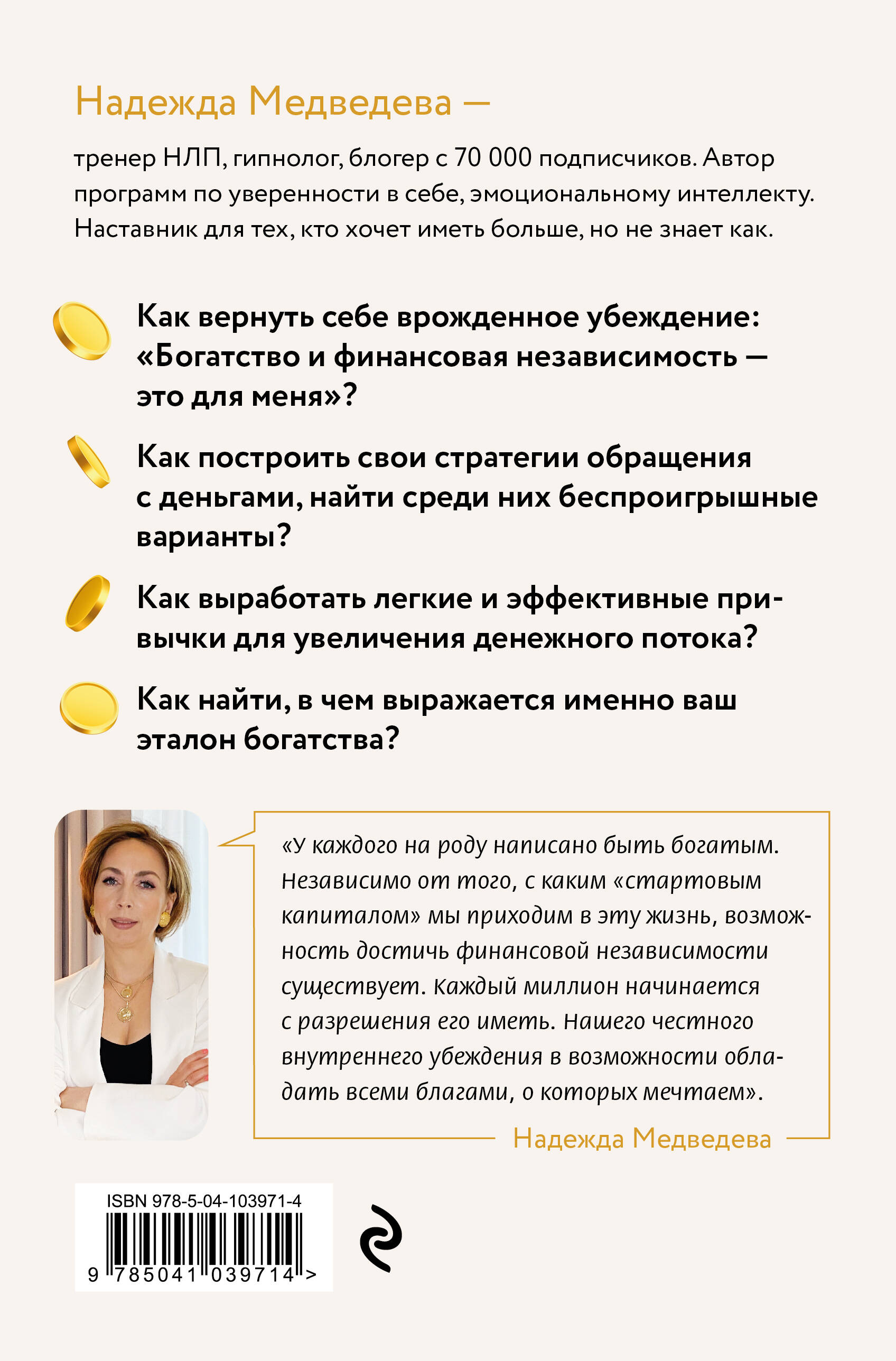 Эта книга для тех, кто хочет: - вернуть себе врожденное убеждение: «Богатство и финансовая независимость - это для меня»; - узнать свои стратегии обращения с деньгами, найти среди них устаревшие паттерны, пробовать новые варианты; - встроить легкие и эффективные привычки для увеличения денежного потока; - совместить деловую тактику в обращении с финансами с творческим, игровым подходом; - найти, в чем выражается именно ваш эталон богатства, будь то белоснежная яхта на причале, путешествия по миру или возможность заниматься любимым хобби, не думая о счетах за газ.| Издательство | ООО "Издательство "Эксмо" |