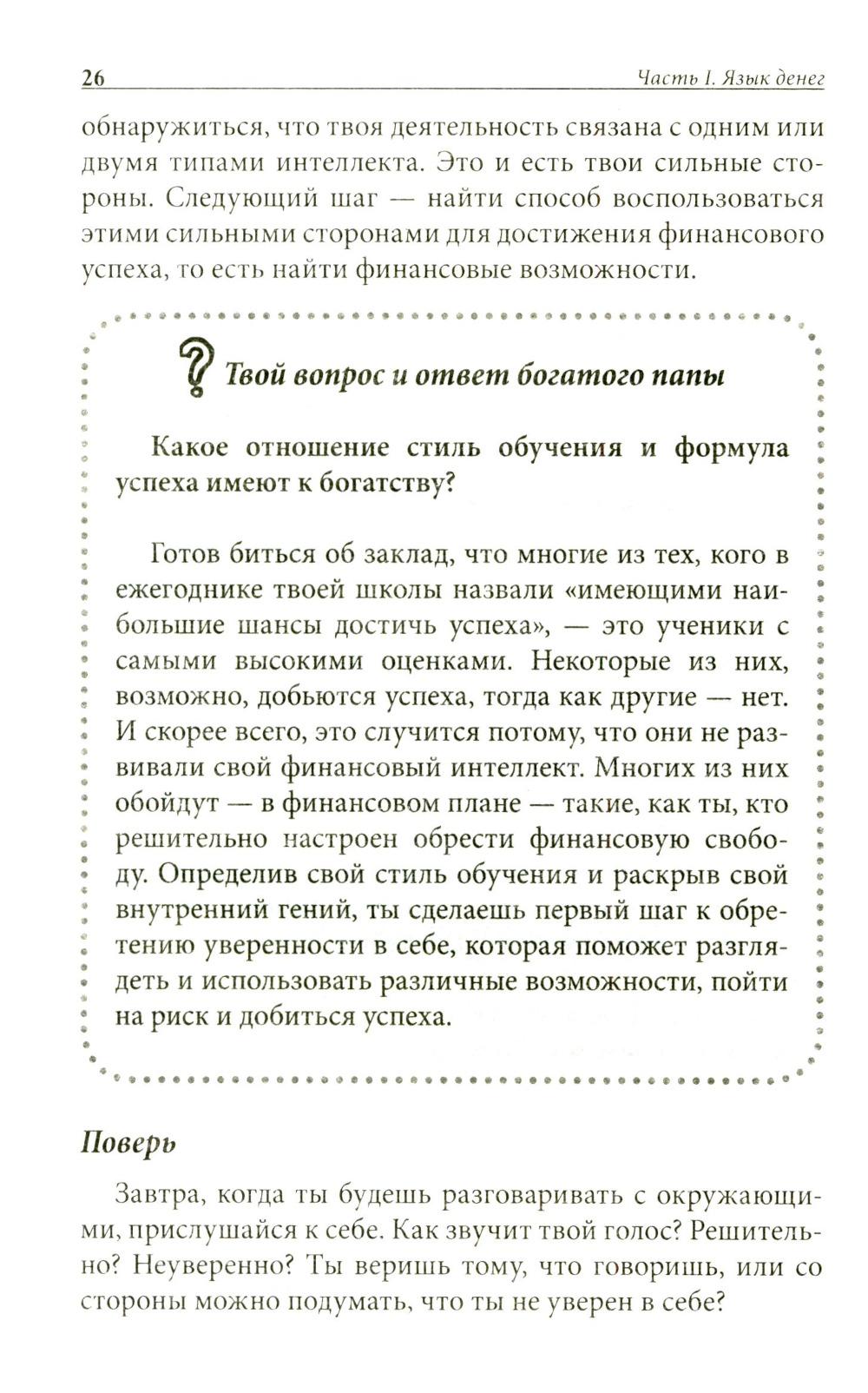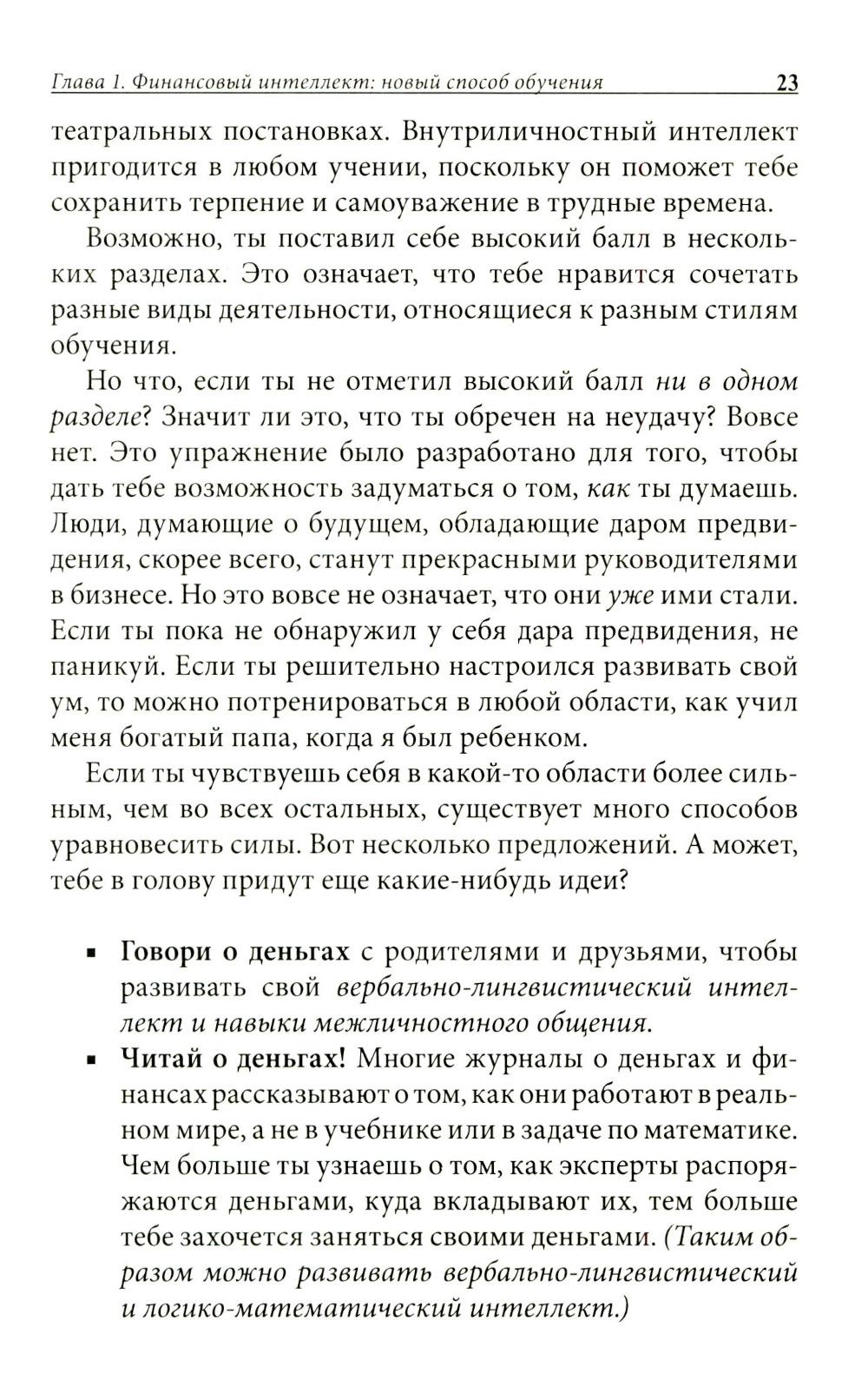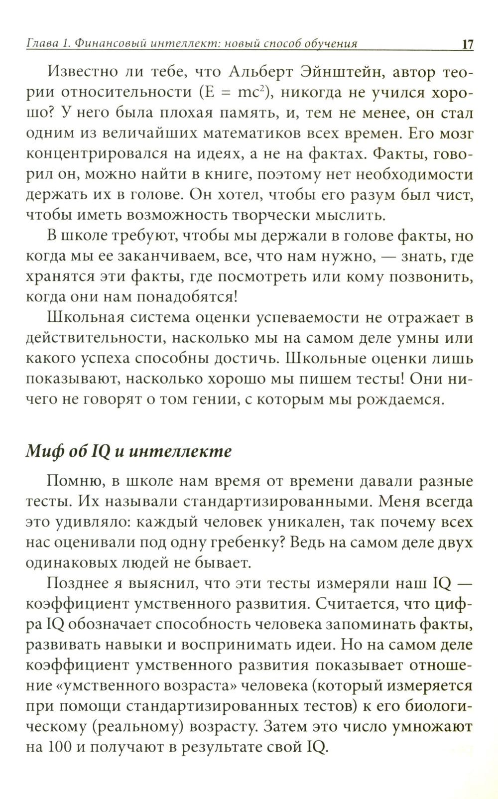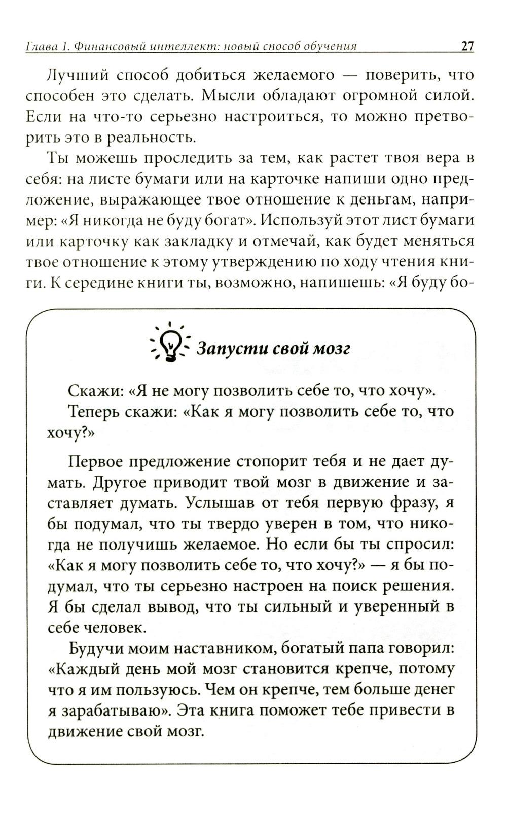 Знания, которые ты получаешь в школе, тебе вряд ли когда-нибудь пригодятся? Учителя не готовят тебя к жизни в реальном мире? Значит, эта книга - для тебя! Она поможет тинейджерам уже сегодня сделать правильный выбор - именно тот выбор, благодаря которому люди становятся по-настоящему богатыми. Роберт Кийосаки дает возможность каждому подростку получить элементарные основы финансовой грамотности и добиться своей цели - научиться делать деньги.