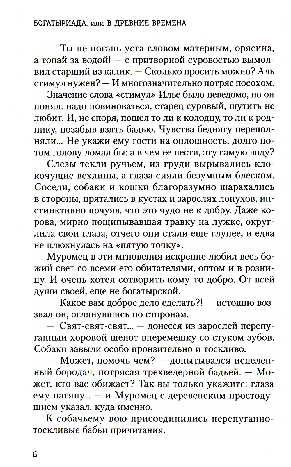 Богатыри - верные сыны Руси-матушки и слуги великого князя Владимира - очень стараются, не жалеют сил, защищая родную землю от супостатов. Но, увы, они чересчур буквально понимают княжеские слова: «Веселие Руси есть пити, не можем без того жити!» Из-за чего постоянно попадают в смешные, нелепые ситуации. И страстная любовь сразу нескольких девушек только запутывает дело. А тут еще один из сподвижников богатырей - обладатель волшебного дара перемещаться во времени и пространстве - путает им все карты: то он попадает к Стеньке Разину и его персиянке, то под белое солнце пустыни, то в гарем эмира бухарского! Вы представляете, что творилось?| Издательство | Феникс |