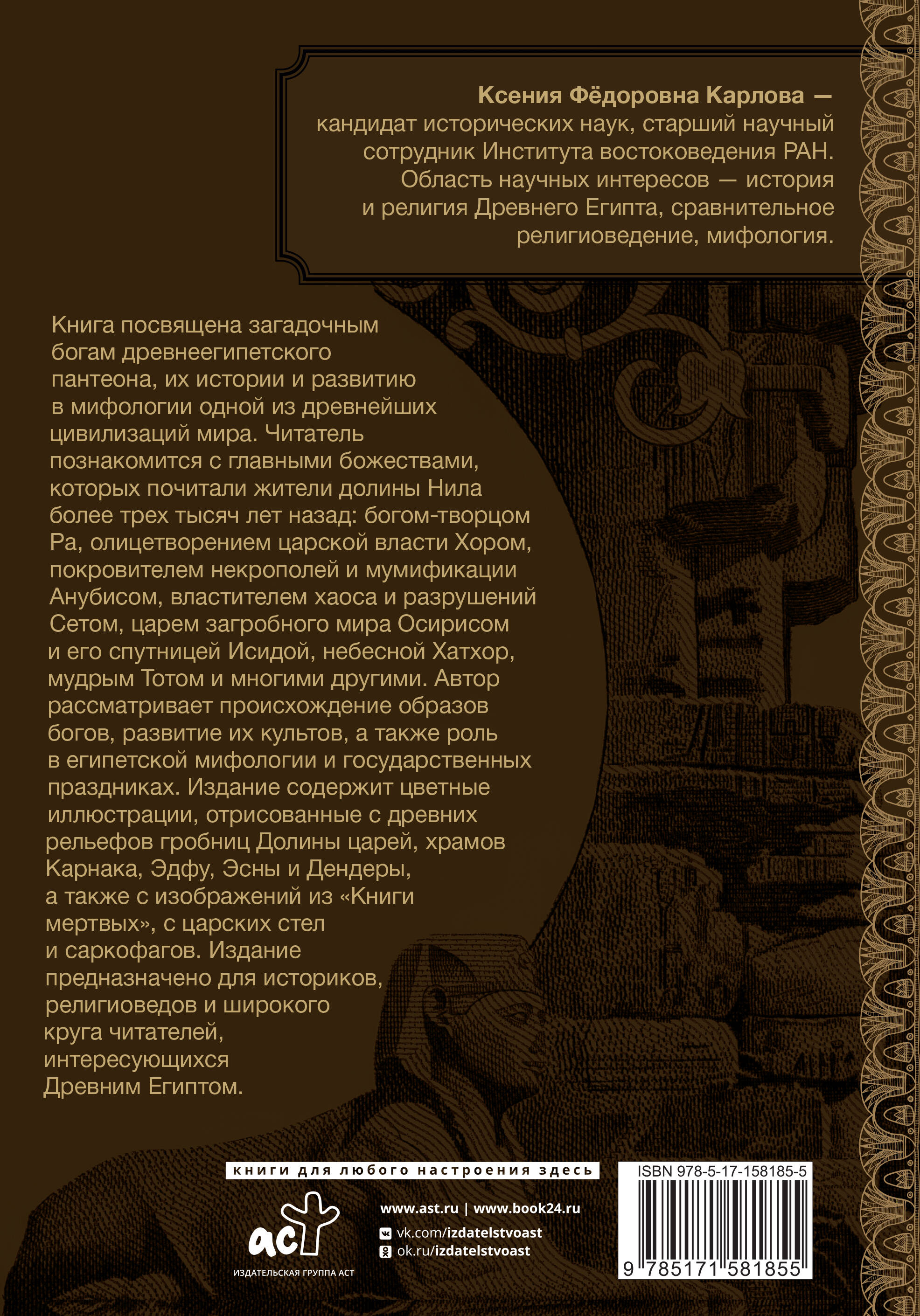 Книга посвящена загадочным богам древнеегипетского пантеона, их истории и развитию в мифологии одной из древнейших цивилизаций мира. Читатель познакомится с главными божествами, которых почитали жители долины Нила более трех тысяч лет назад: богом-творцом Ра, олицетворением царской власти Хором, покровителем некрополей и мумификации Анубисом, властителем хаоса и разрушений Сетом, царем загробного мира Осирисом и его спутницей Исидой, небесной Хатхор, мудрым Тотоми многими другими. Автор рассматривает происхождение образов богов, развитие их культов, а также роль в египетской мифологии и государственных праздниках. Издание содержит цветные иллюстра-ции, отрисованные с древних рельефов гробниц Долины царей, храмов Карнака, Эдфу, Эсны и Дендеры, а также с изображений из "Книги мертвых", с царских стел и саркофагов. Издание предназначенодля историков, религиоведов и широкого круга читателей, интересующихся Древним Египтом.| Издательство | Издательство "АСТ" |