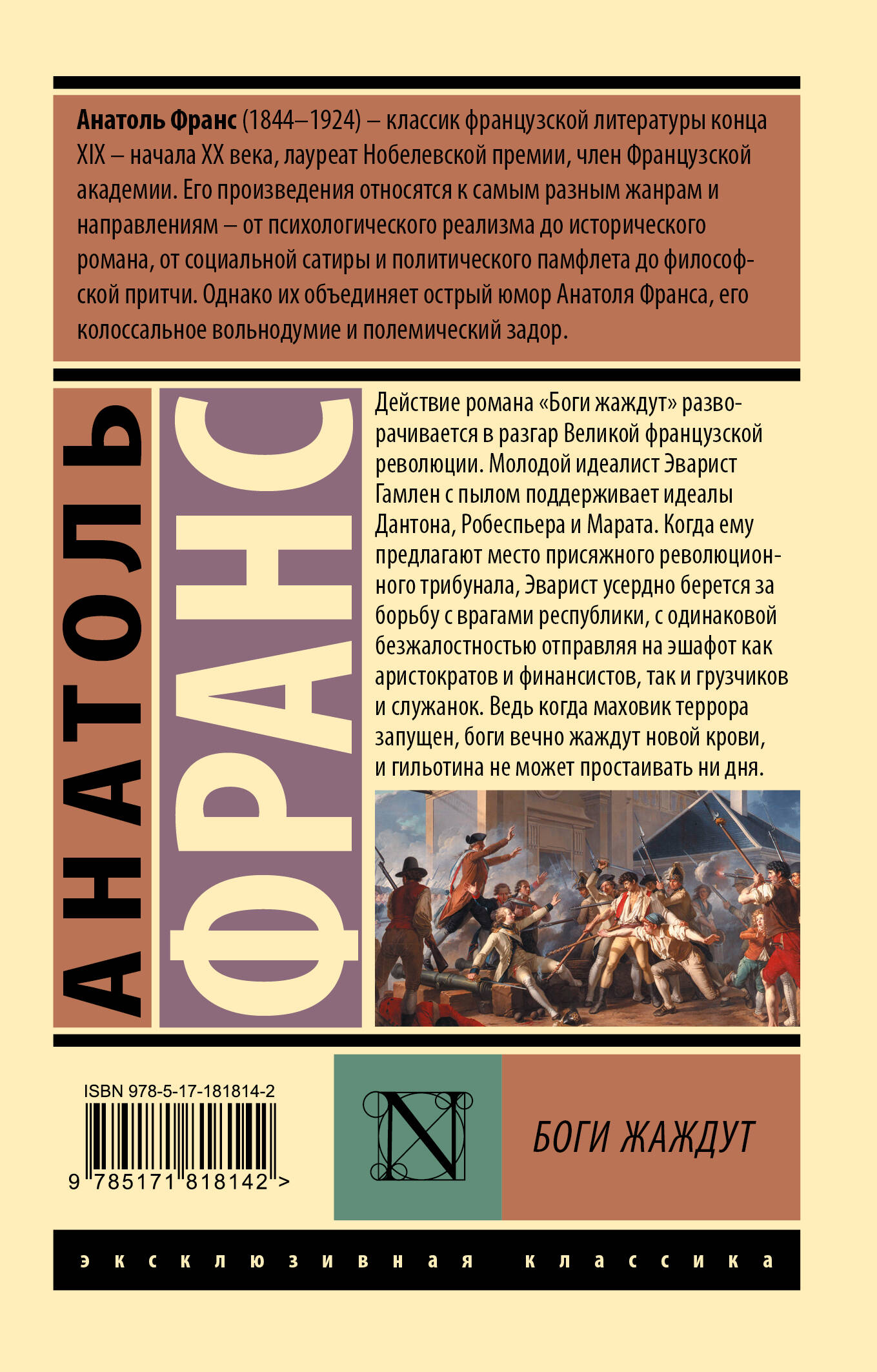 Действие романа "Боги жаждут" разворачивается в разгар Великой французской революции. Молодой идеалист Эварист Гамлен с пылом поддерживает идеалы Дантона, Робеспьера и Марата. Когда ему предлагают место присяжного революционного трибунала, Эварист усердно берется за борьбу с врагами республики, с одинаковой безжалостностью отправляя на эшафот как аристократов и финансистов, так и грузчиков и служанок. Ведь когда маховик террора запущен, боги вечно жаждут новой крови, и гильотина не может простаивать ни дня.| Издательство | Издательство "АСТ" |