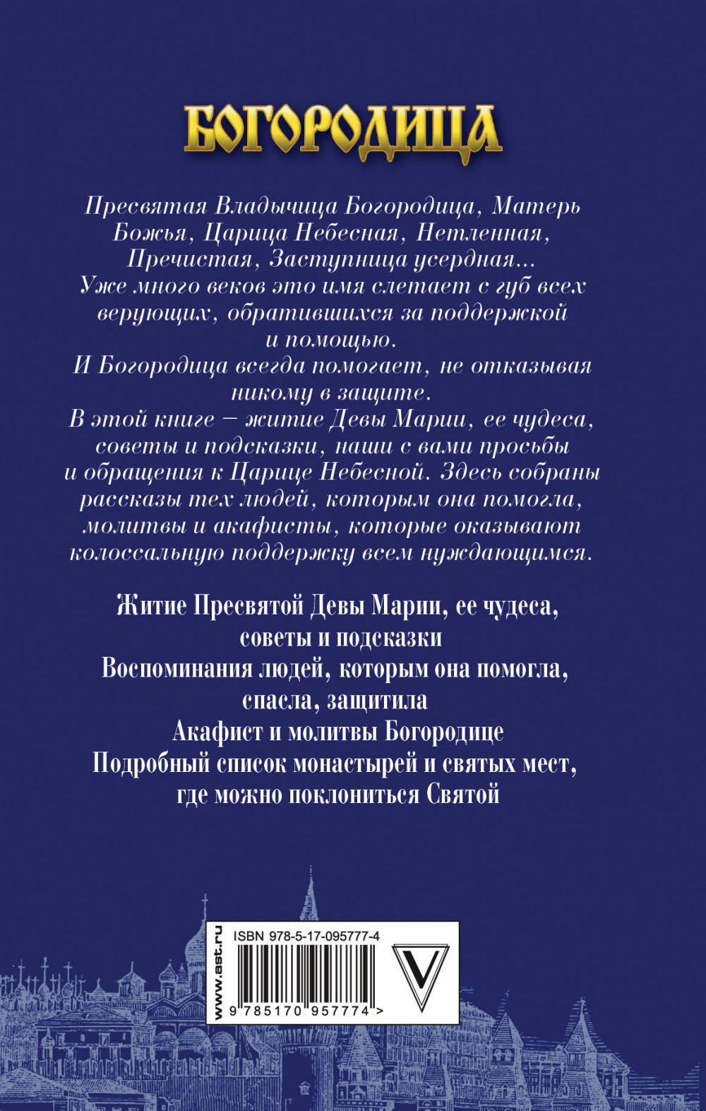 В этой книге - житие Девы Марии, ее чудеса, советы и подсказки, наши с вами просьбы и обращения к Царице Небесной. Здесь собраны рассказы тех людей, которым она помогла, молитвы и акафисты, которые оказывают колоссальную поддержку всем нуждающимся.