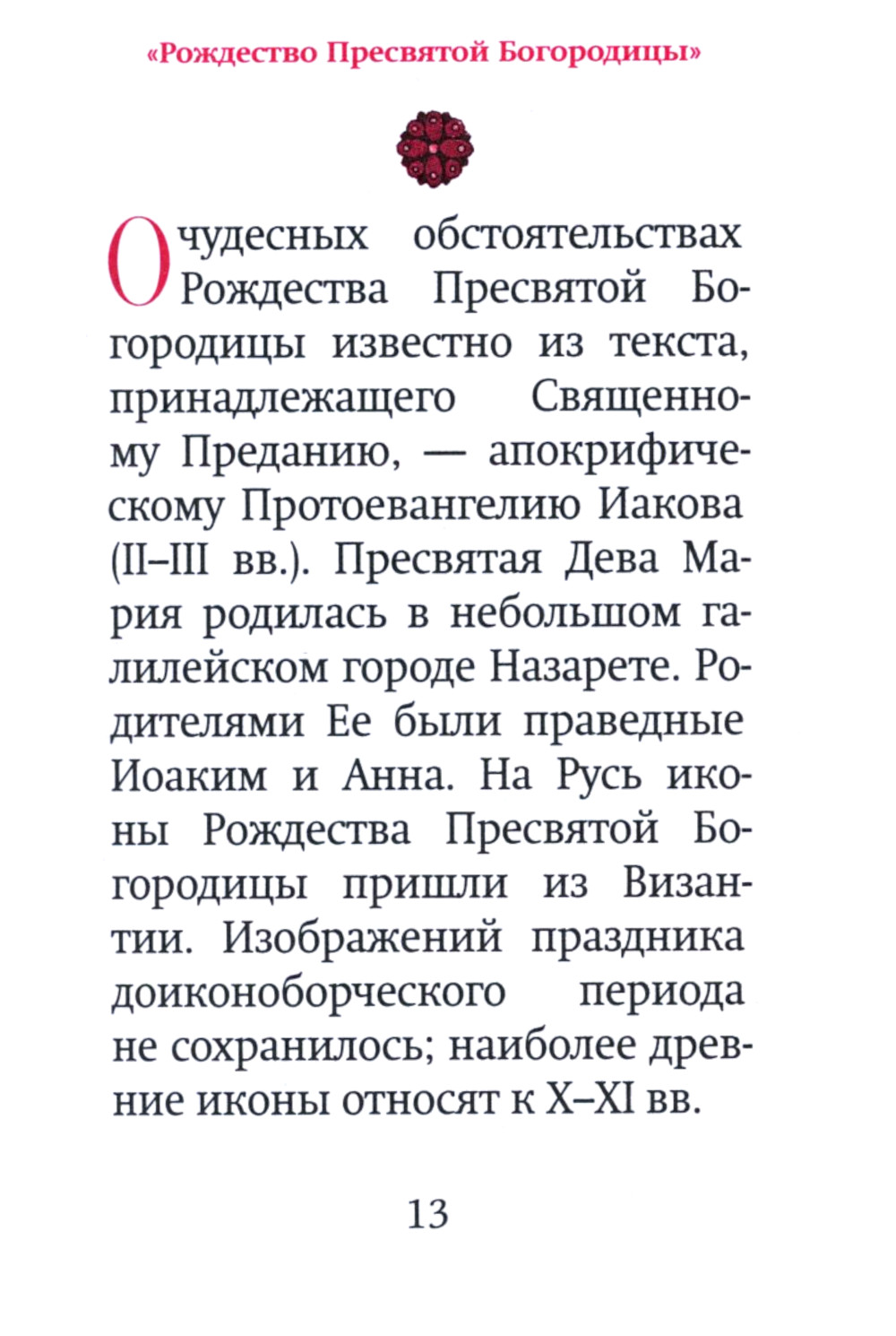 «Кто Тебе не ублажит Пресвятая Дево? Ангельский собор и человеческий род по долгу Тя прославляет: Тебе бо ради Христос в мир я вися, Егоже прославляюще, Тя величаем», - читаем мы в каноне Пресвятой Богородице. Пресвятая Дева Мария являет собой великий пример для подражания всем христианам - пример смирения, истинного угождения Богу, девственной, чистой и благочестивой жизни.| Издательство | Благовест** |