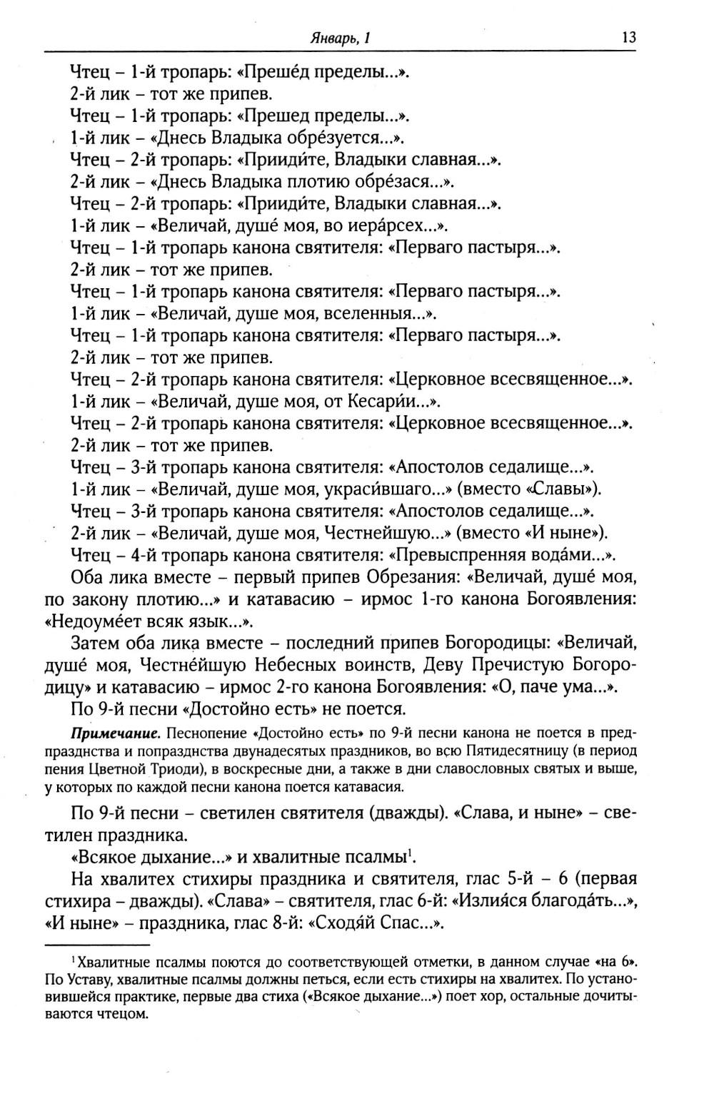 Литургическая жизнь Православной Церкви регламентируется ее Церковным Уставом, зафиксированным в особой книге, именуемой Типикон, или Устав. Типикон в своих указаниях определяет, как в течение всего церковного года, день за днем соединять за богослужениями в определенном порядке и в нужном количестве молитвословия и песнопения, содержащиеся в богослужебных книгах.| Издательство | Изд.Московской Патриархии РПЦ |