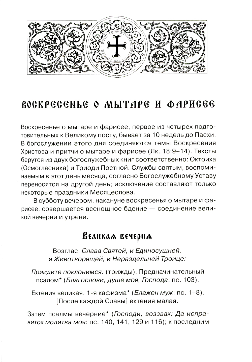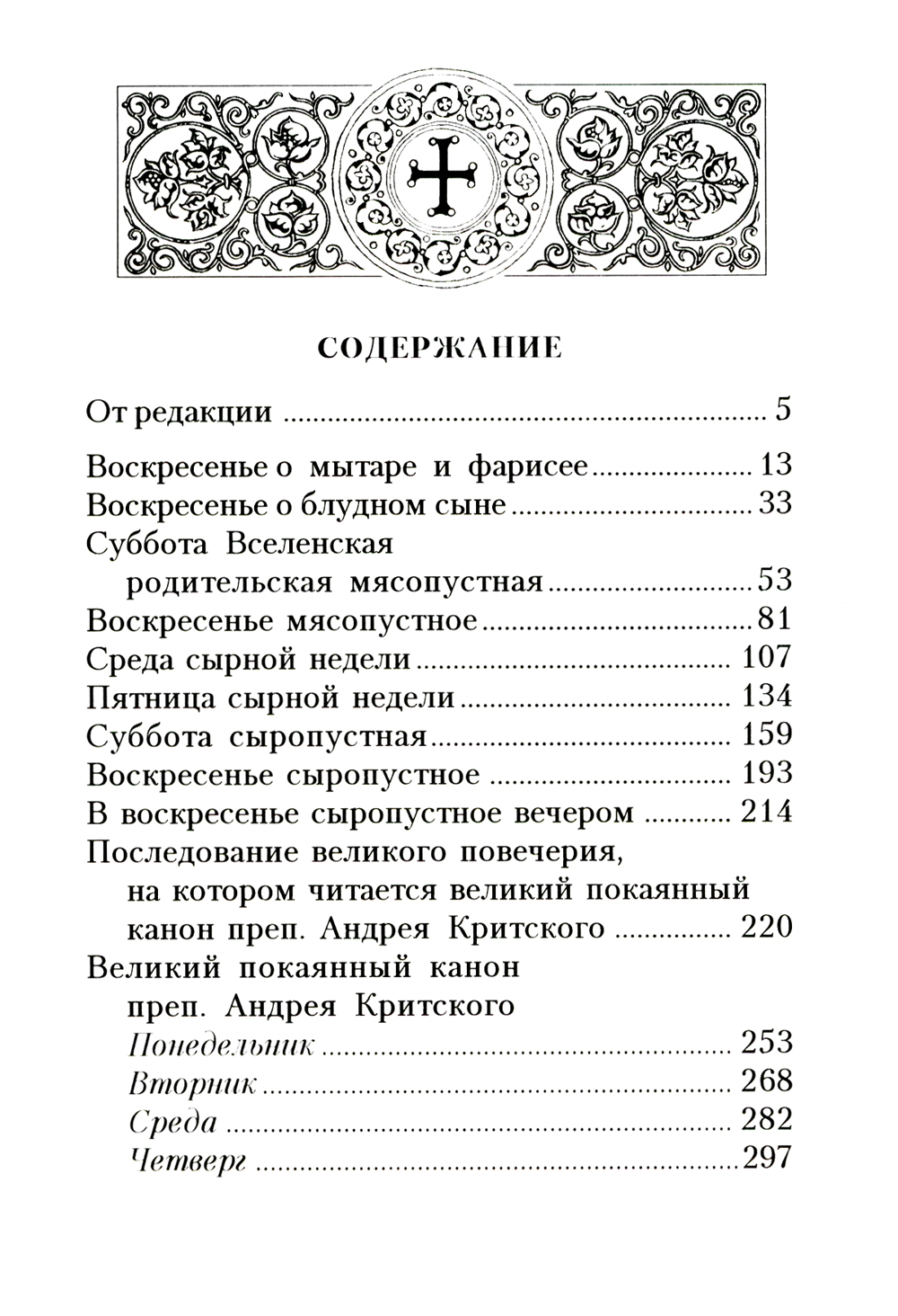 Богослужебные тексты Триоди Постной - неисчерпаемая сокровищница православного богословия и гимнографии. К сожалению, верующие не всегда могут воспринять это словесное богатство со слуха, поэтому представляется насущной необходимость донести его до ума и сердца русского церковного человека в общедоступной форме. В настоящем издании, являющемся первой книгой из серии, печатаются тексты наиболее посещаемых служб подготовительного предпасхальною периода от Воскресенья о мытаре и фарисее и до Воскресенья пятого Великого поста, посвященного преподобной Марии Египетской. Структура книги позволяет ее использовать и в храме, и для домашнего чтения. Кроме того, издание может использоваться в качестве учебного пособия по литургике. Настоящее издание существенно расширено и исправлено по сравнению с изданием 2002 года.| Издательство | Православный Свято-Тихоновский гуманитарный унив. |