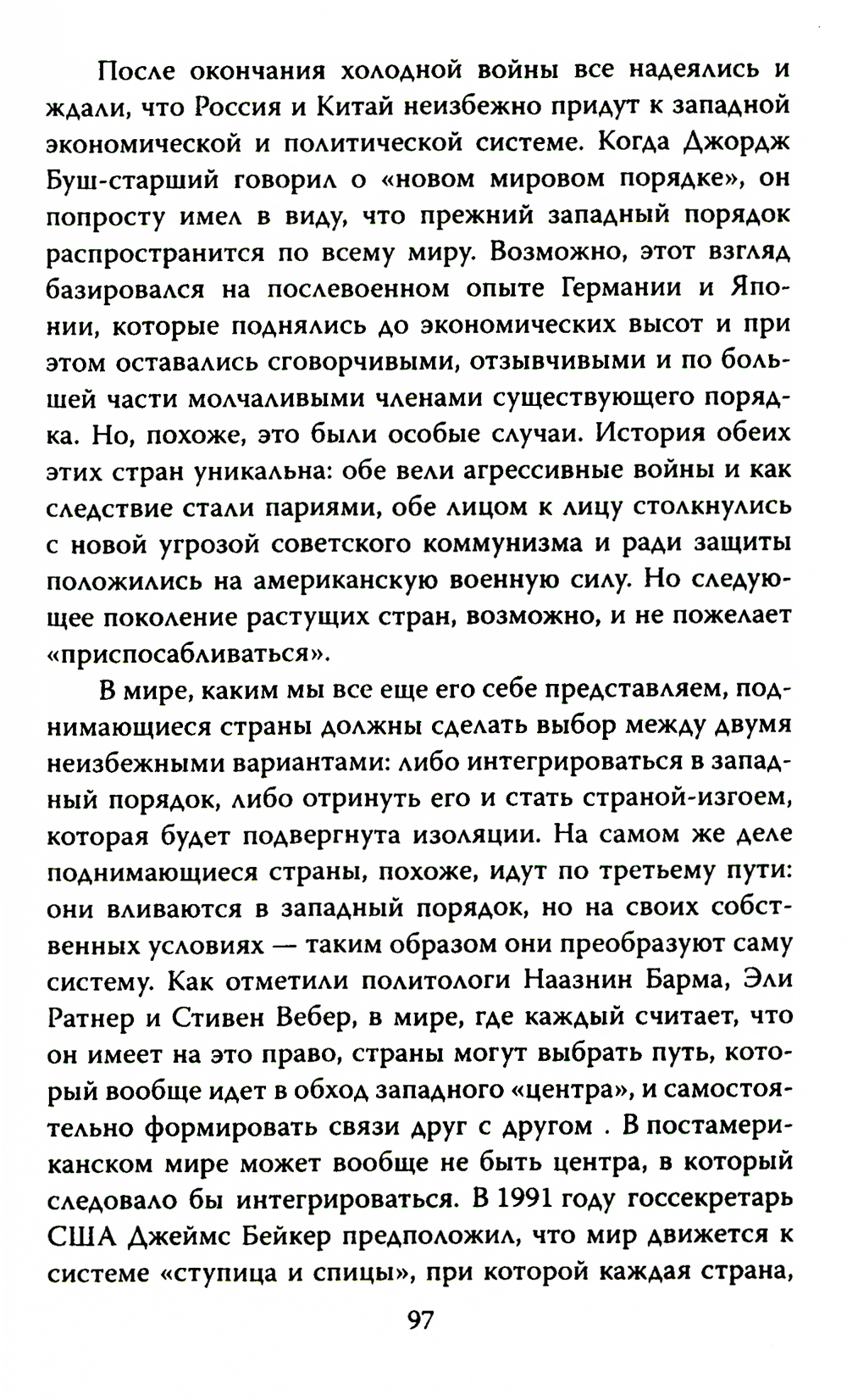 Фарид Закария - один из самых влиятельных и популярных американских политических аналитиков, редактор еженедельника Newsweek International. Ф. Закария - автор многих книг, посвященных современной геополитике, кроме того, он долгие годы ведет на CNN передачу «Глобальная политическая арена», куда приглашаются ведущие политики мира и разбираются самые острые вопросы международных отношений. В данной книге собраны наиболее значительные и актуальные материалы Ф. Закарии как из «Глобальной политической арены», так и написанные по поводу тех или иных событий, в том числе по поводу противостояния США и России в мире, и будущего, которое нас ожидает.