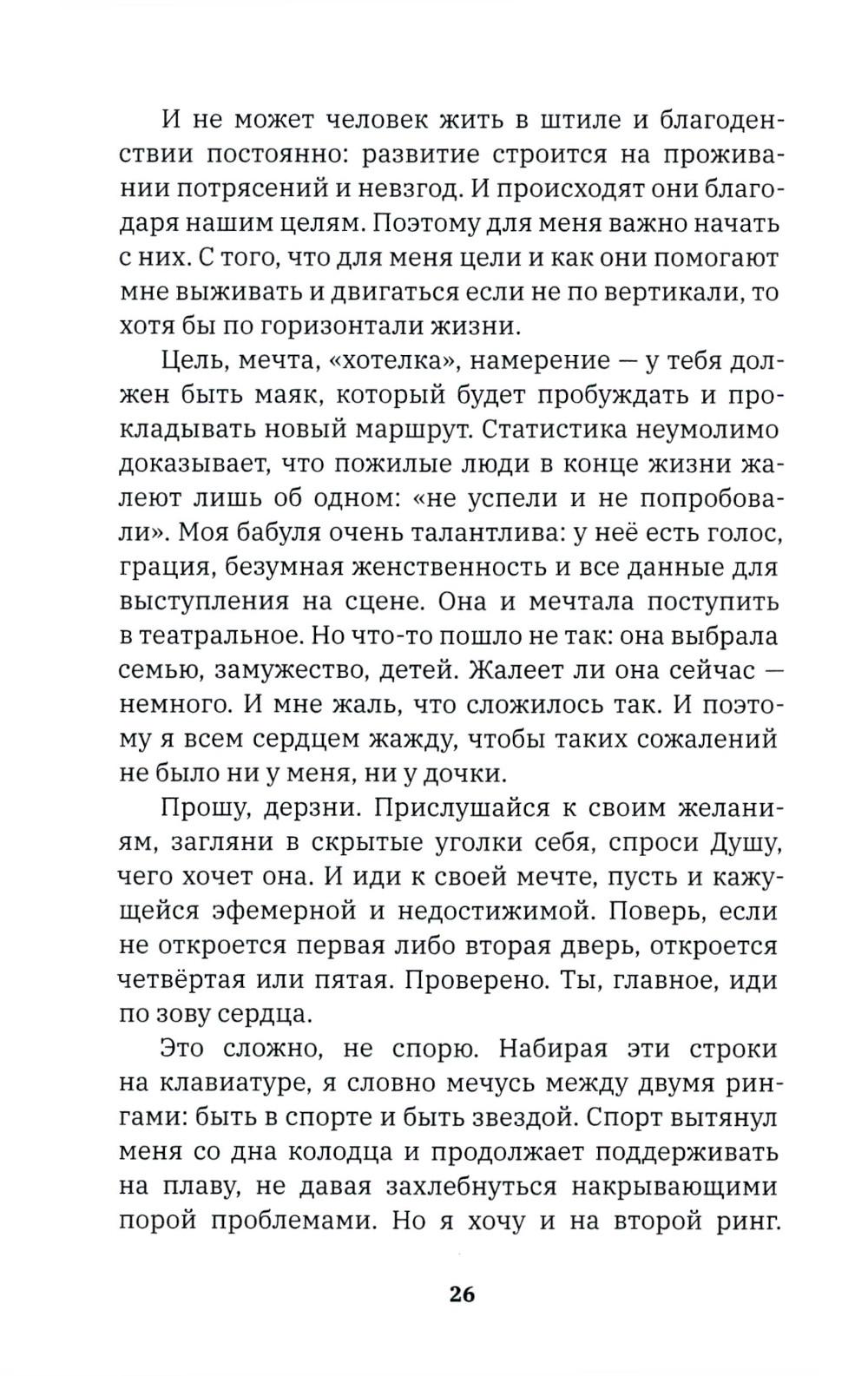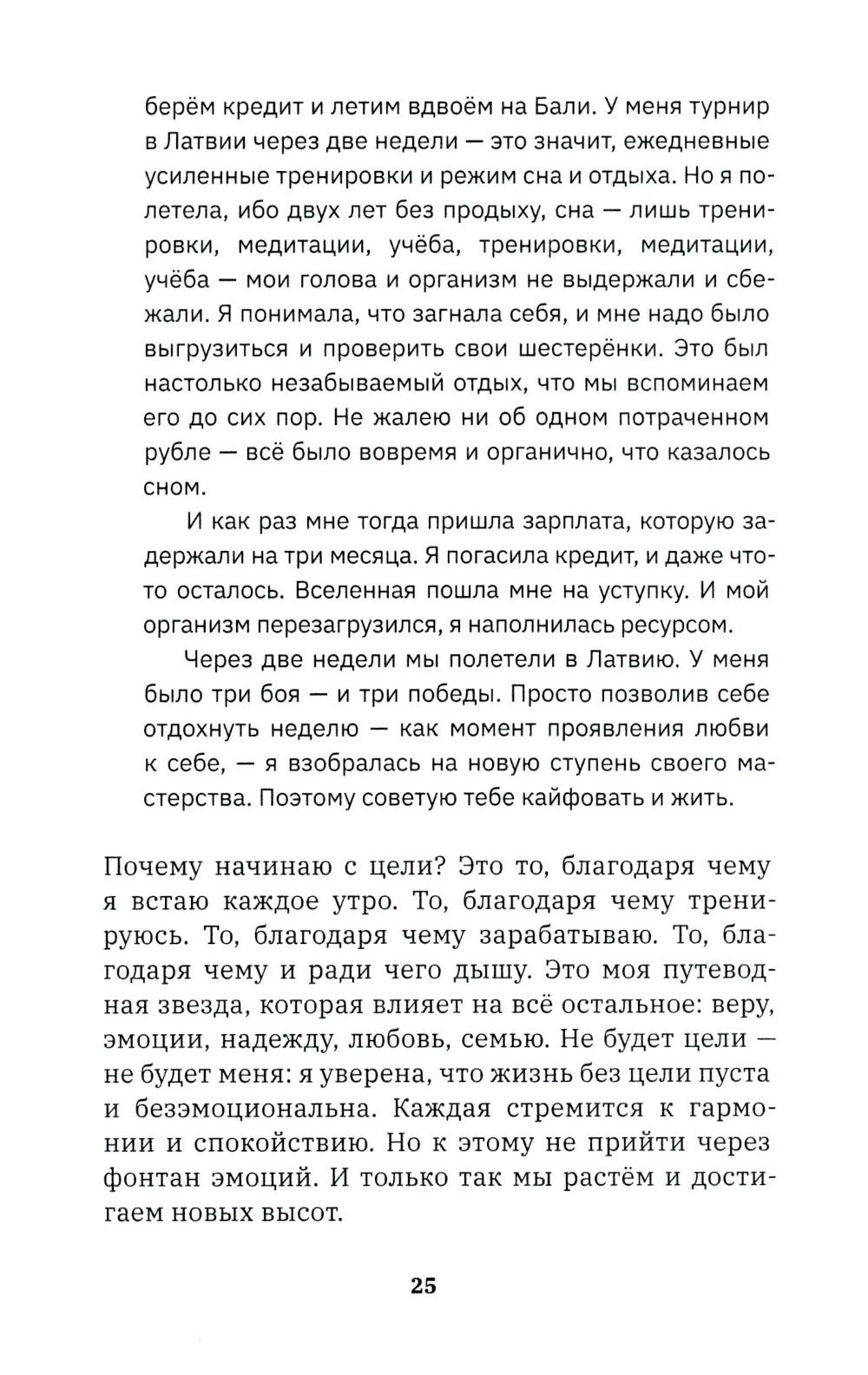 СОДЕРЖИТ ИНФОРМАЦИЮ О НАРКОТИЧЕСКИХ ИЛИ ПСИХОТРОПНЫХ ВЕЩЕСТВАХ, УПОТРЕБЛЕНИЕ КОТОРЫХ ОПАСНО ДЛЯ ЗДОРОВЬЯ. ИХ НЕЗАКОННЫЙ ОБОРОТ ВЛЕЧЕТ УГОЛОВНУЮ ОТВЕТСТВЕННОСТЬ. «Каждый удар судьбы можно превратить в шаг к победе». Эта книга - больше, чем мемуары спортсменки. Это честный разговор о боли, потерях и преодолении, о силе духа, которая рождается тогда, когда кажется, что дальше идти невозможно. Автор - чемпионка мира по кикбоксингу и победительница Кубка мира по боксу. Но её настоящая победа - не титулы, а умение вставать после падений и находить в себе силы жить, верить и любить, когда рушится всё. Здесь - личная история: детство в неблагополучной семье, спортивные вершины и трагические утраты, борьба с зависимостями и страхами. Здесь - честные признания и упражнения, которые помогут читателю справиться с собственными кризисами. Эта книга - путеводитель для людей, уставших бороться в одиночку. Она вдохновляет, поддерживает и напоминает: - твоя цель важнее оправданий; - поражение - лишь урок, а не финал; - настоящая сила рождается из уязвимости; - любовь к себе - лучший пояс чемпиона. Если тебе кажется, что ты на грани, - эта книга поможет вспомнить: в тебе достаточно сил, чтобы начать новый отсчёт.| Издательство | Издание книг ком |