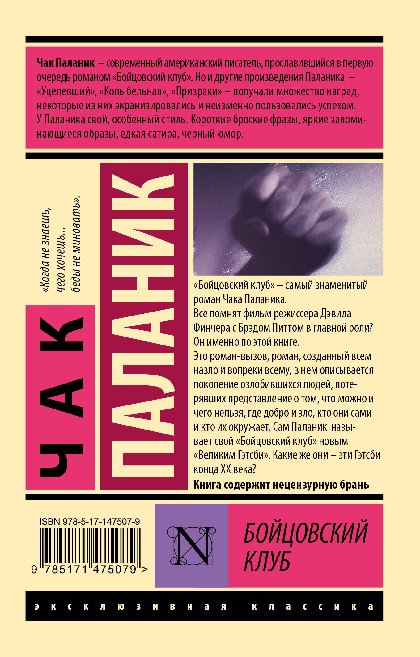 "Бойцовский клуб" - самый знаменитый роман Чака Паланика. Все помнят фильм режиссера Дэвида Финчера с Брэдом Питтом в главной роли? Он именно по этой книге. Это роман-вызов, роман, созданный всем назло и вопреки всему, в нем описывается поколение озлобившихся людей, потерявших представление о том, что можно и чего нельзя, где добро и зло, кто они сами и кто их окружает. Сам Паланик называет свой "Бойцовский клуб" новым "Великим Гэтсби". Какие же они - эти Гэтсби конца XX века?