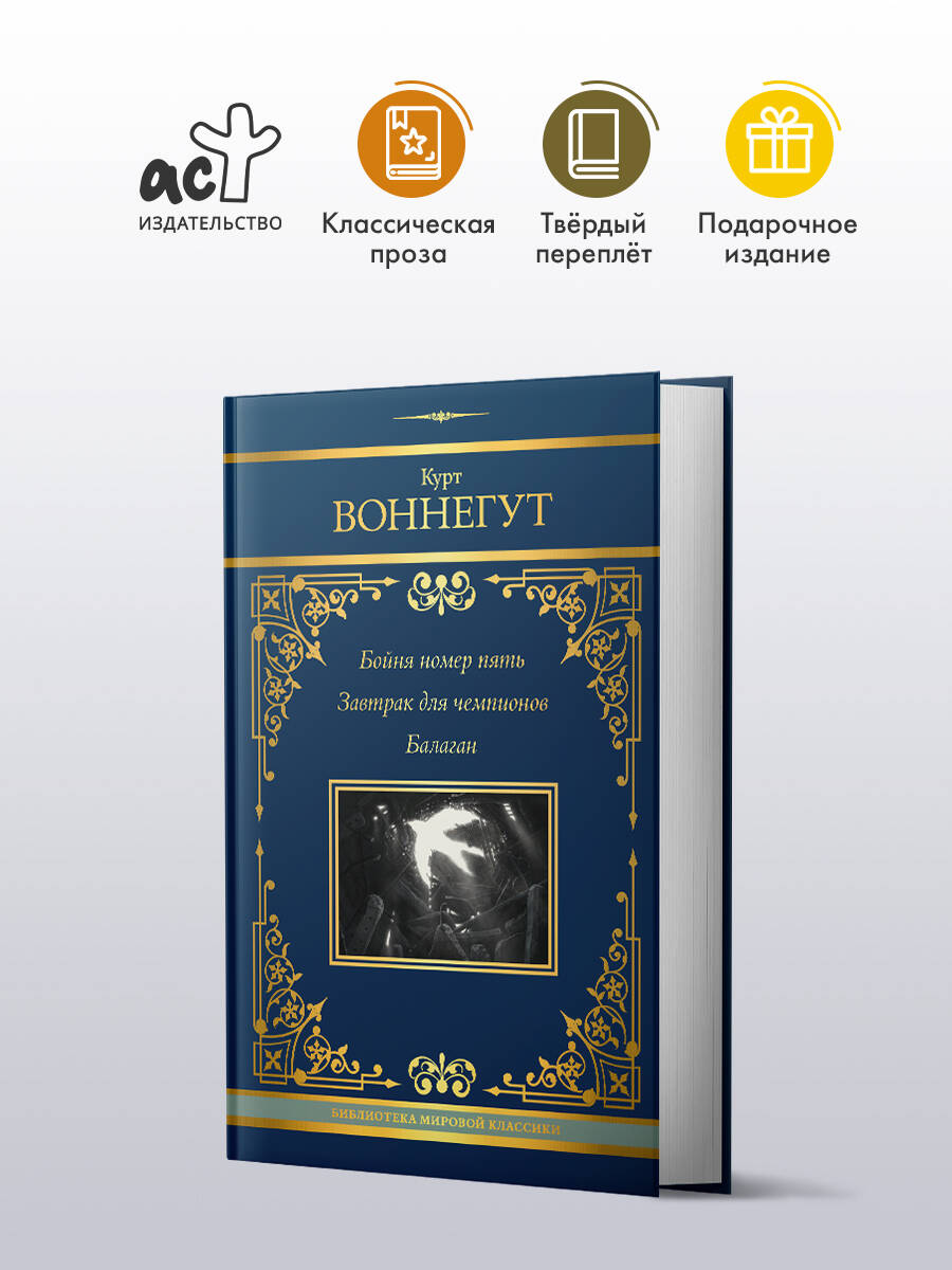 - Сразу три романа Курта Воннегута под одной обложкой. В предлагаемое издание вошли романы «Бойня номер пять», «Завтрак для чемпионов» и «Балаган». - Бессмертная классика XX века в подарочном исполнении. В серии «Neoclassic (Лучшее)» выпускаются только лучшие авторы и самые выдающиеся произведения - и только в качественном коллекционном оформлении. - Для всех, кто ценит глубокое содержание и черный юмор!