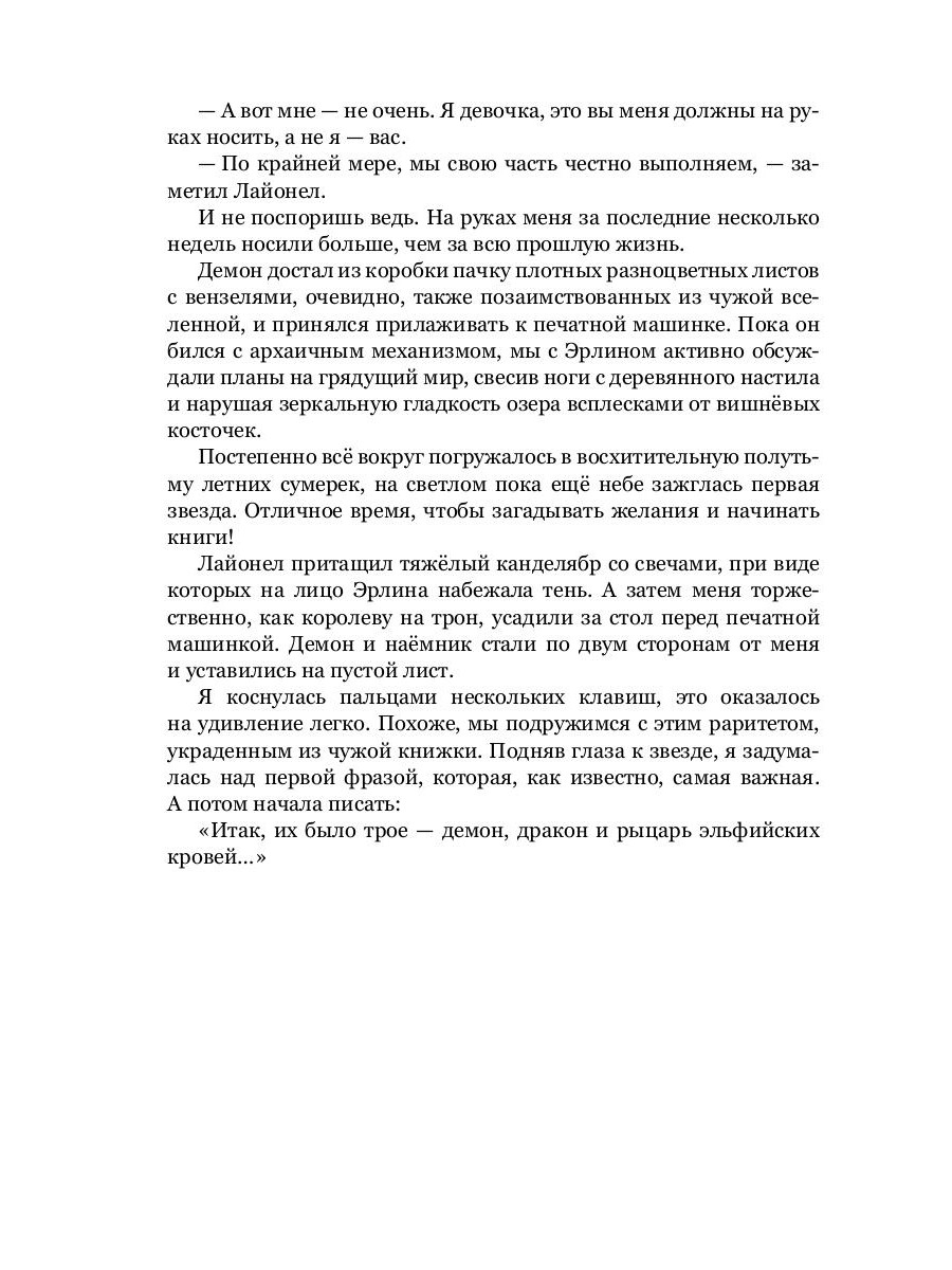 Так уж сложилось, что Еве удалось оказаться на страницах своей же книги. Каково демиургу жить в придуманном им мире, утратив возможность влиять хоть на что-нибудь, включая события собственной жизни? Теперь Ева - всего лишь книжный герой. Зато, как и любого героя, впереди её ждут приключения, новые встречи и, конечно, романтика - всё, чего ей так не хватало в обычном мире.