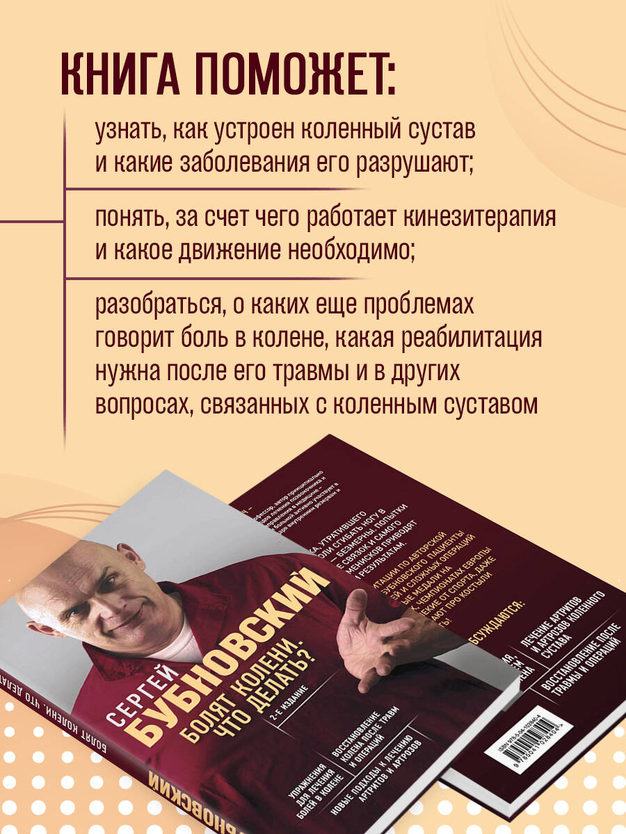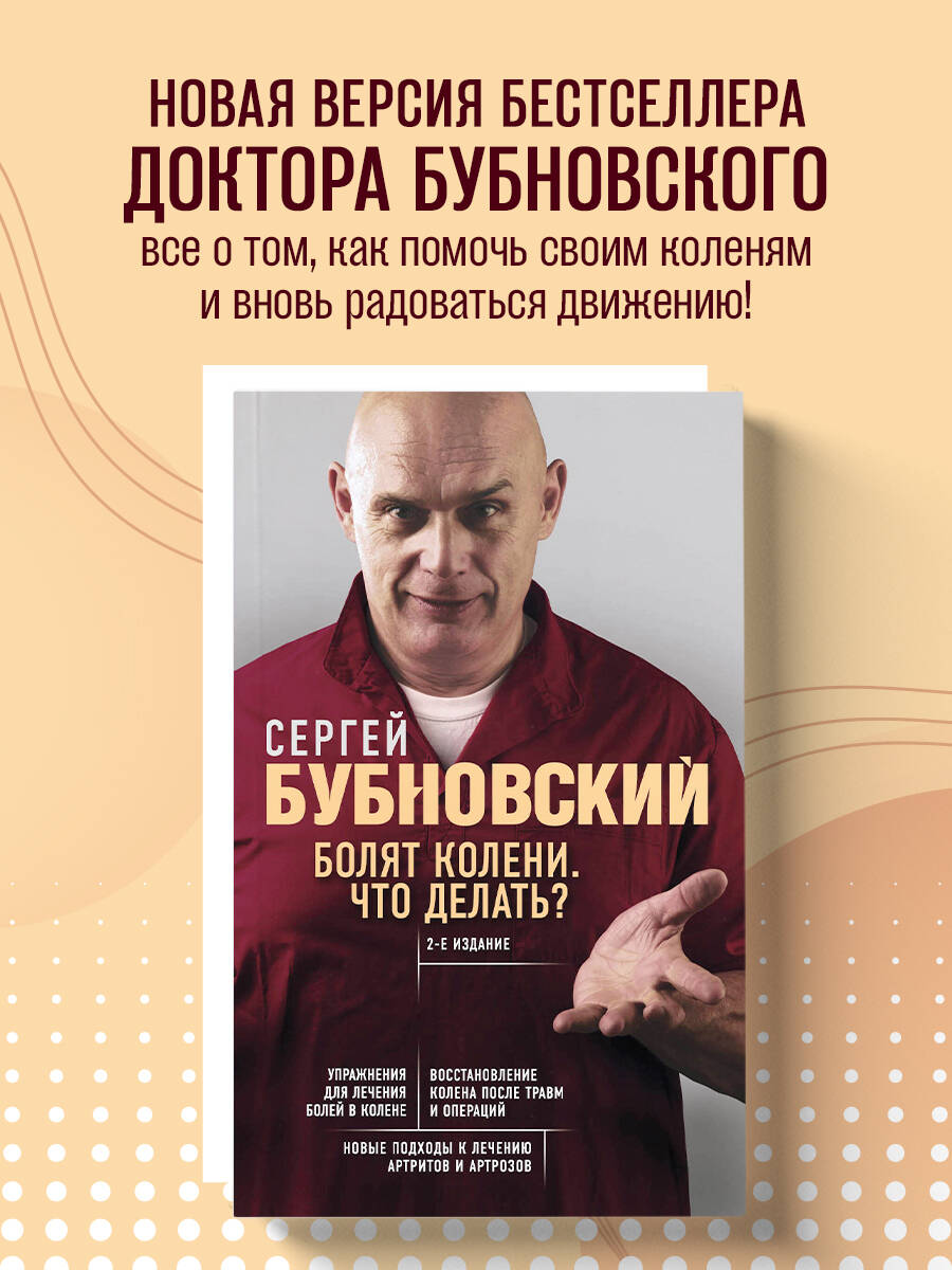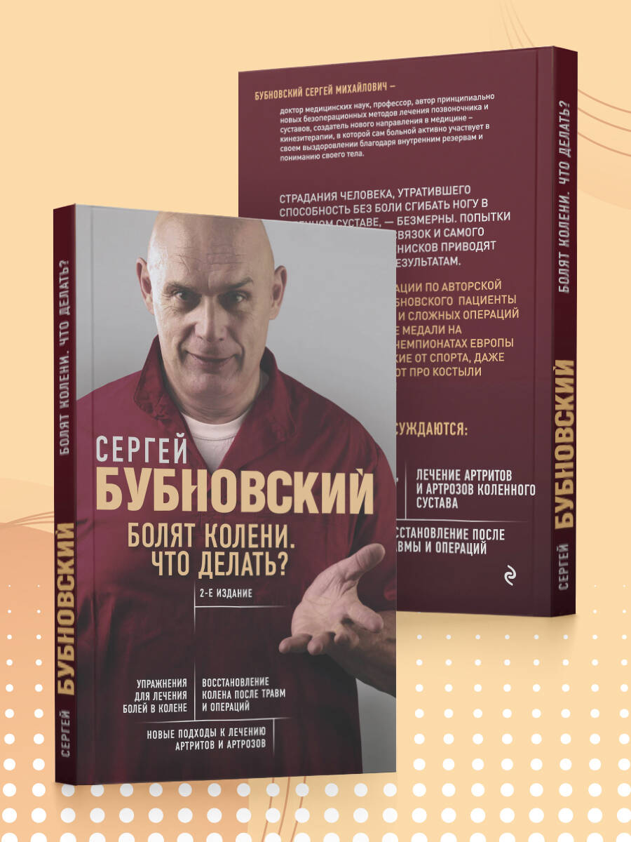 Лидер продаж! В книге «Болят колени. Что делать?» доктор Бубновский подробно описал лечение артритов и артрозов коленного сустава, восстановление после травмы и операций, также даны специально разработанные автором упражнения. Благодаря реабилитации по авторской методике доктора Бубновского пациенты после травм коленей и сложных операций выигрывают золотые медали на Олимпийских играх, чемпионатах Европы и мира, а люди, далекие от спорта, даже после 70-ти, забывают про костыли и перестают хромать! Книга продана тиражом 322 000 экземпляров.