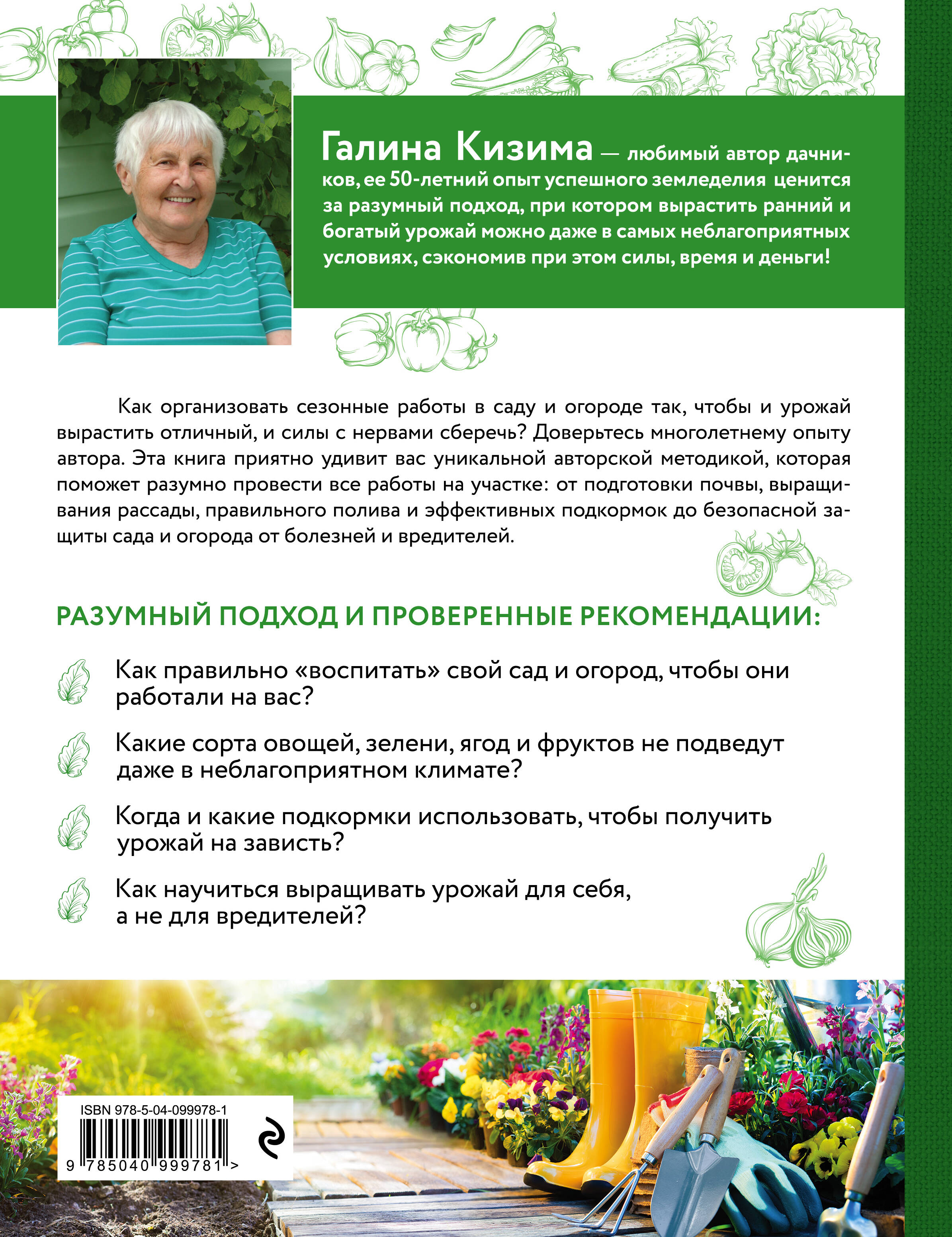 Книга Галины Кизимы станет отличным подарком садоводам и огородникам, которые хотят без лишних финансовых затрат и труда выращивать на своем дачном участке овощи, зелень, ягоды и фрукты. Благодаря проверенной авторской агротехнике, подобранным сортам, рекомендациям по защите и профилактике от болезней и вредителей, вы сможете каждый сезон получать гарантированный урожай даже в самой неблагоприятной климатической зоне. В книге содержатся все необходимые сведения для успешного выращивания на своем участке всего ассортимента овощных, плодовых, зеленных и ягодных культур.| Издательство | ООО "Издательство "Эксмо" |