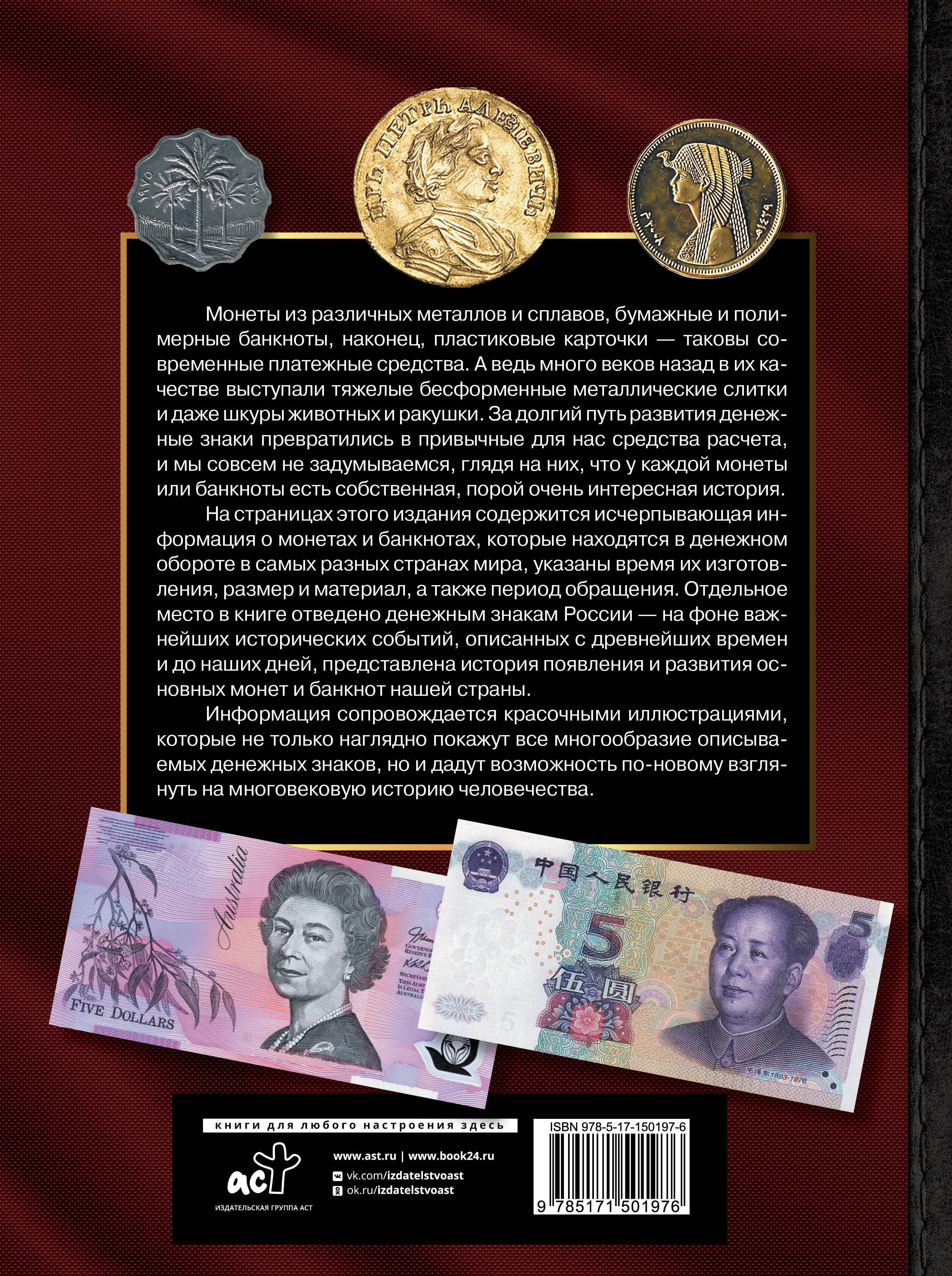 На страницах этого издания содержится исчерпывающая информация о монетах и банкнотах, которые находятся в денежном обороте в самых разных странах мира, указаны время их изготовления, размер и материал, а также период обращения. Отдельное место в книге отведено денежным знакам России - на фоне важнейших исторических событий, описанных с древнейших времен и до наших дней, представлена история появления и развития основных монет и банкнот нашей страны. Информация сопровождается красочными иллюстрациями, которые не только наглядно покажут все многообразие описываемых денежных знаков, но и дадут возможность по-новому взглянуть на многовековую историю человечества.| Издательство | ИЗДАТЕЛЬСТВО "АСТ" |