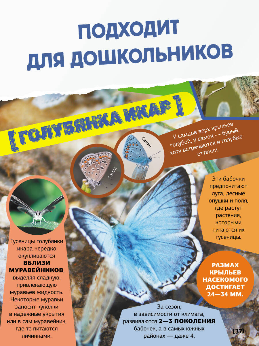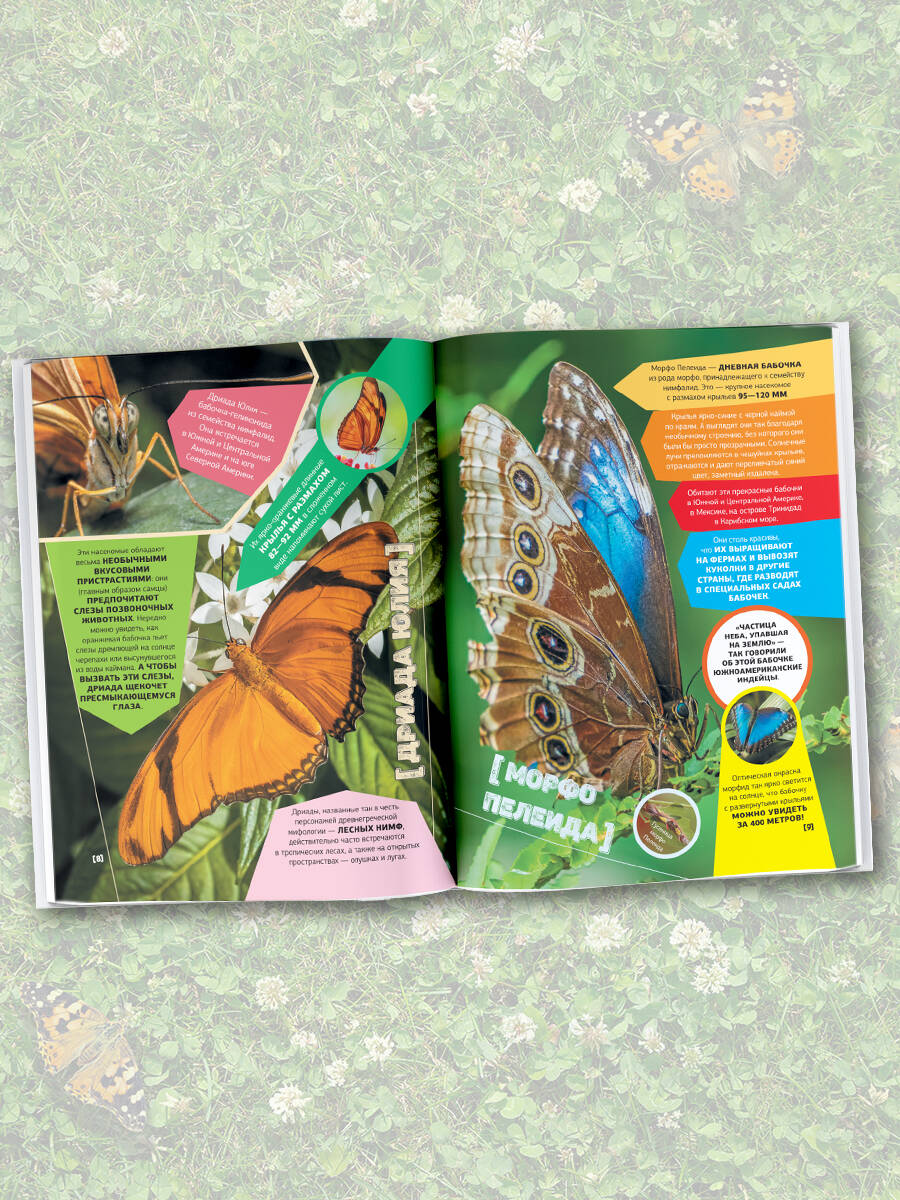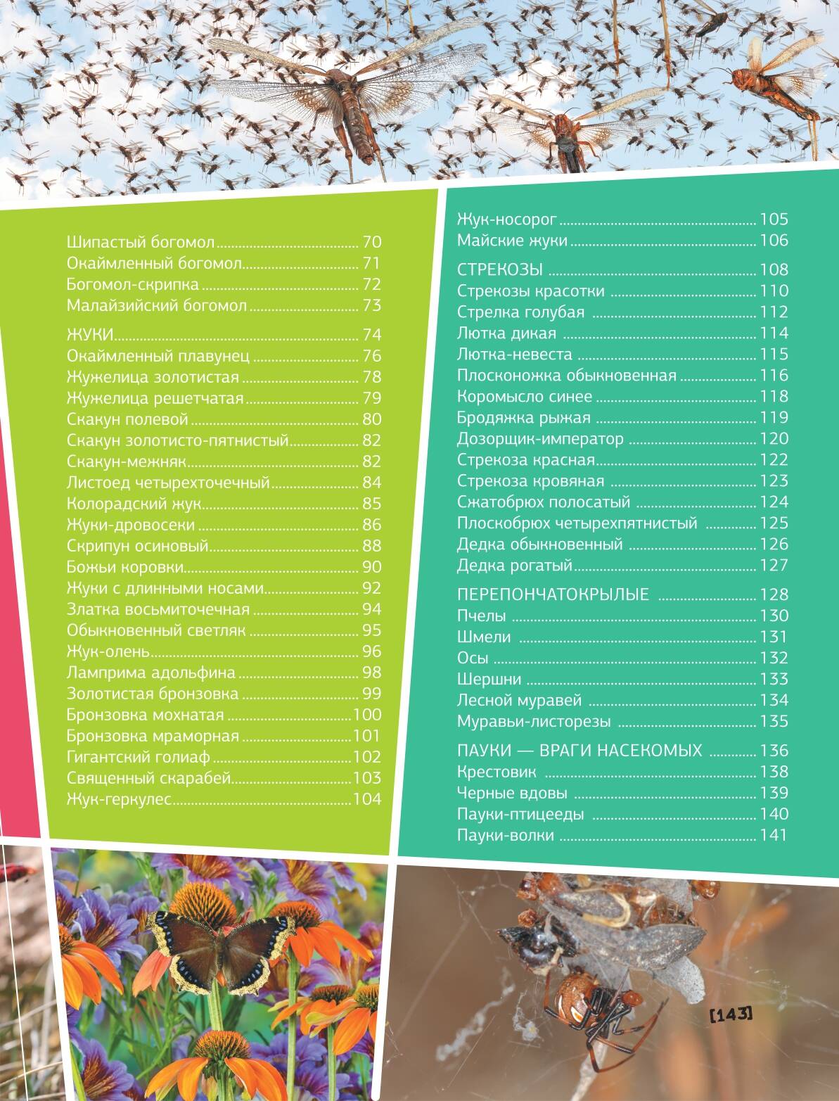 Эта энциклопедия знакомит детей с миром насекомых нашей планеты, но делает это в несколько ином формате, чем другие издания. Здесь нет больших описательных статей и научной классификации - лишь короткие факты и уникальные фотографии бабочек и стрекоз, жуков и кузнечиков, пчел и муравьев, а также известных недругов насекомых - пауков. И несмотря на это, юный читатель получит полное представление о том или ином насекомом, ведь приведенная здесь информация не только интересная, но и вполне познавательная, а фотоснимков этих удивительных созданий крупным планом так много, что их можно рассмотреть со всех ракурсов и в мельчайших подробностях.