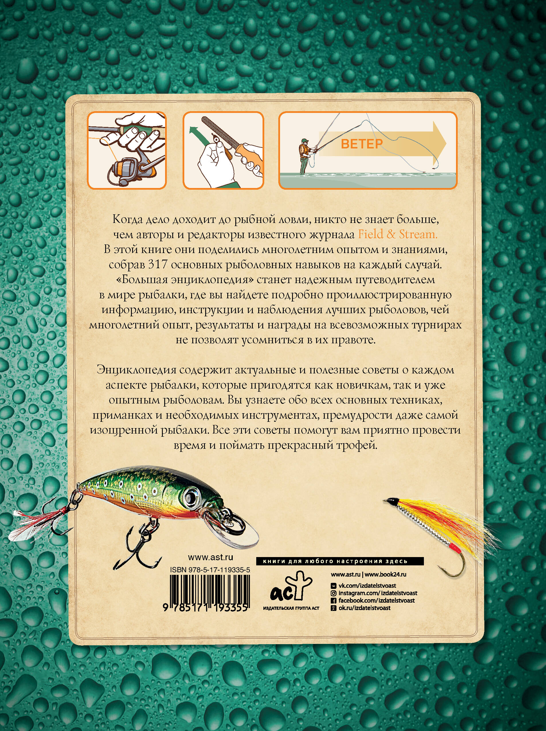 Когда дело доходит до рыбной ловли, никто не знает больше, чем авторы и редакторы известного журнала Field & Stream. В этой книге они поделились многолетним опытом и знаниями, собрав 317 основных рыболовных навыков на каждый случай. "Большая энциклопедия" станет надежным путеводителем в мире рыбалки, где вы найдете подробно проиллюстрированную информацию, инструкции и наблюдения лучших рыболовов, чей многолетний опыт, результаты и награды на всевозможных турнирах не позволят усомниться в их правоте. Энциклопедия содержит актуальные и полезные советы о каждом аспекте рыбалки, которые пригодятся как новичкам, так и уже опытным рыболовам. Вы узнаете обо всех основных техниках и тактиках, приманках и необходимых инструментах, освоите тонкости и премудрости даже самой изощренной рыбалки. Все эти советы помогут вам приятно провести время и поймать прекрасный трофей.| Издательство | Издательство "АСТ" |