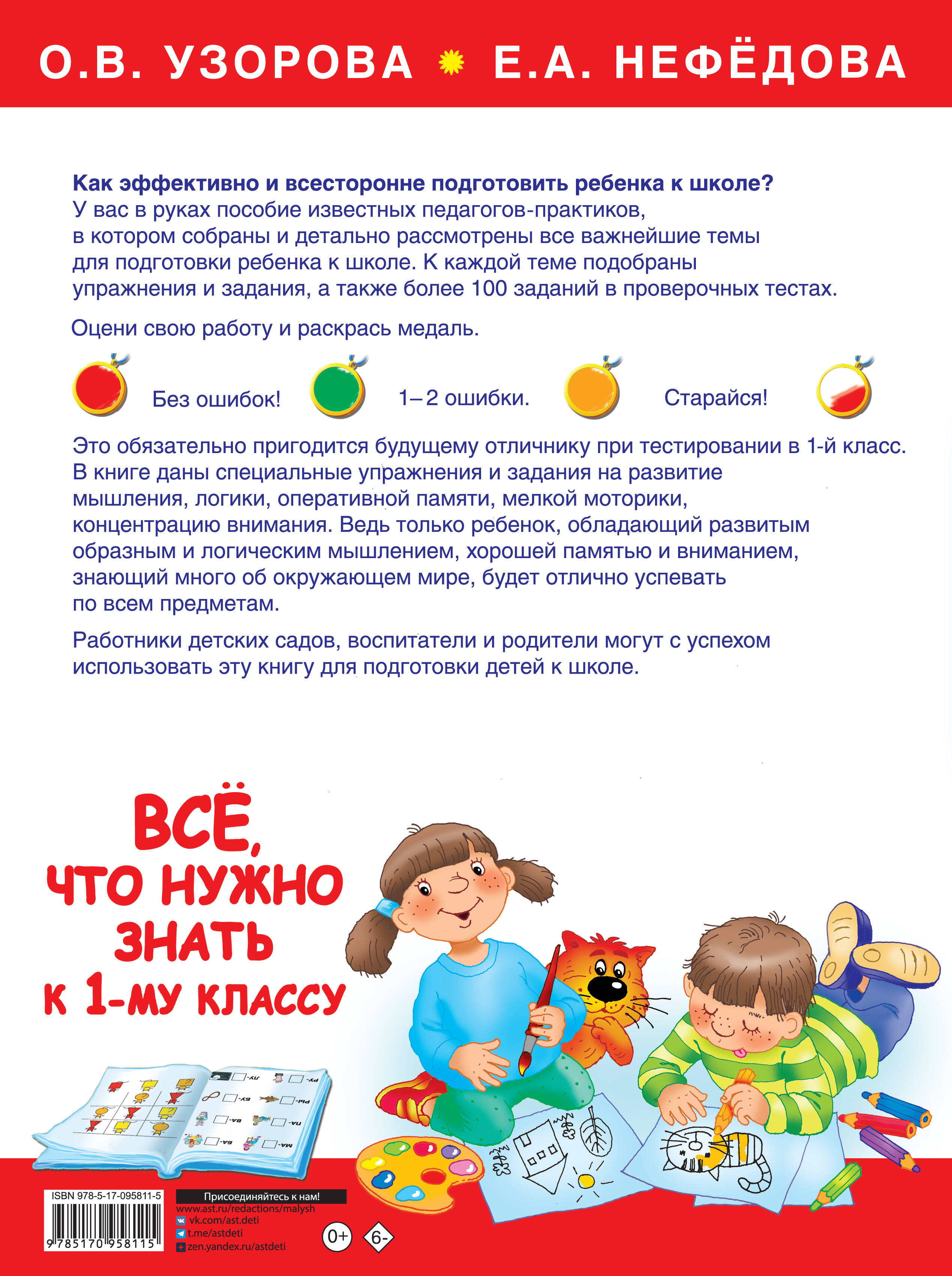 Нужно подготовить ребёнка к школе? Не знаете, с чего начать? Тогда наша книга - именно то, что вам нужно! Эффективная методика известных педагогов О. В. Узоровой и Е. А. Нефёдовой проверена временем и заслужила благодарность нескольких поколений родителей и учителей. В «Большой книге для подготовки к школе» собраны упражнения по важнейшим школьным темам, а также есть более 100 тестовых заданий для проверки полученных знаний. Ваш ребёнок будет чувствовать себя уверенно в 1 классе!| Издательство | ИЗДАТЕЛЬСТВО "АСТ" |