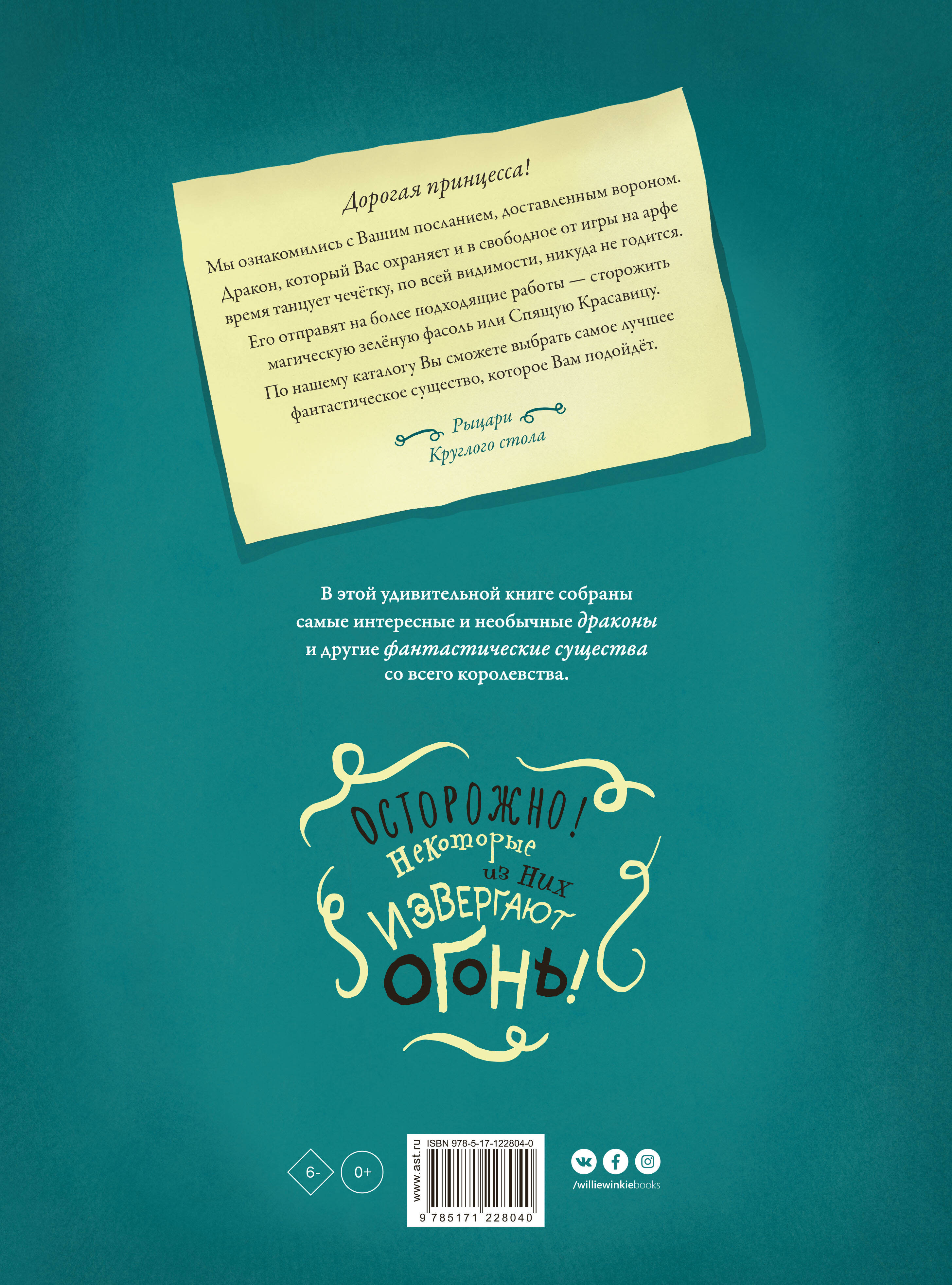Спасите! Принцесса находится в плену у свирепого дракона в мрачной башне... Постойте! Не такой уж он свирепый! Этот дракон целыми днями танцует чечётку и играет на арфе. Понимаете, да? Он совершенно не выполняет свои обязанности свирепого дракона. Пора принцессе написать рыцарям, чтобы те прислали ей кого-то более ответственного. Автор Лоранс Кюблер в очень забавной манере рассказывает юным читателям, как научиться понимать фантастических существ, как устроены драконы, чем знаменит леприкон и как подружиться с эльфами. "Большая книга драконов и других фантастических существ" - это самый настоящий гид, в котором собраны самые интересные и необычные драконы и другие фантастические существа со всего королевства.| Издательство | Издательство "АСТ" |