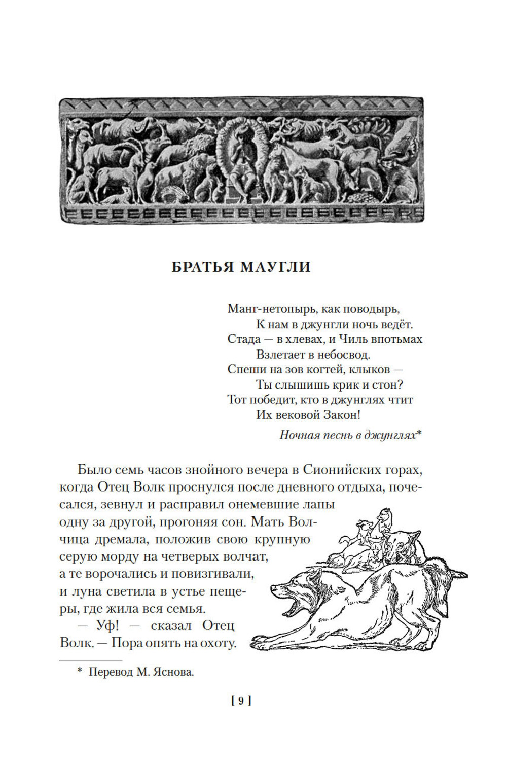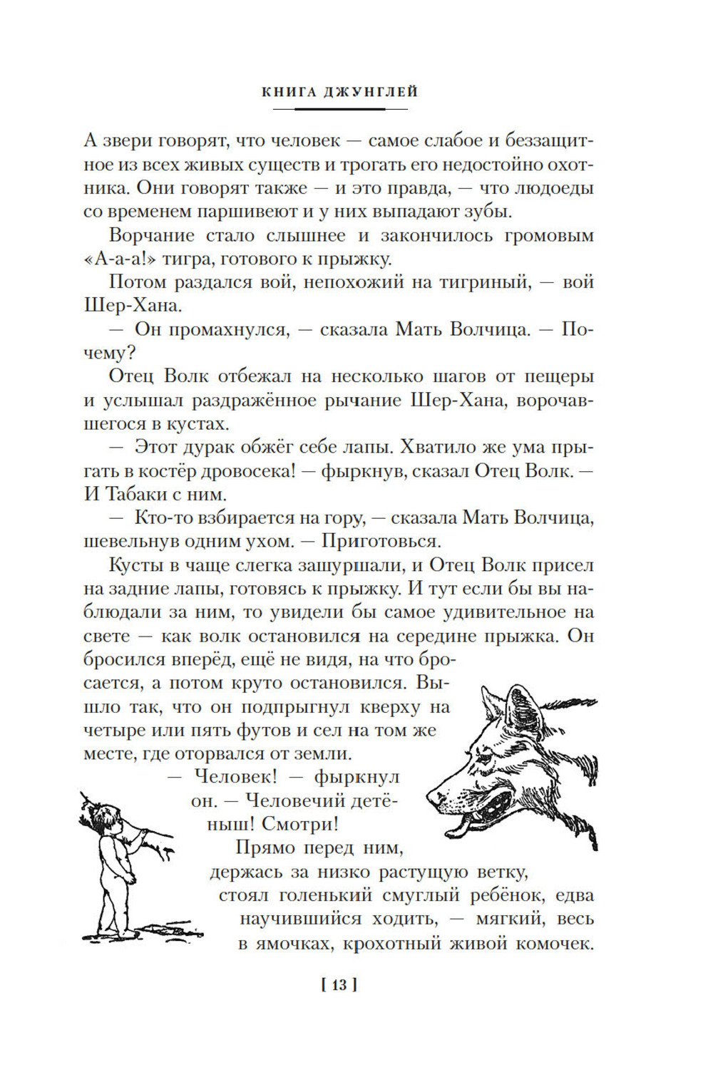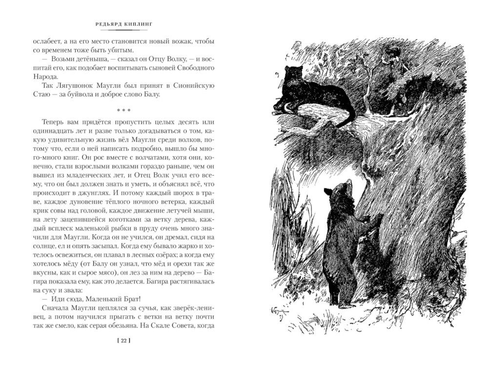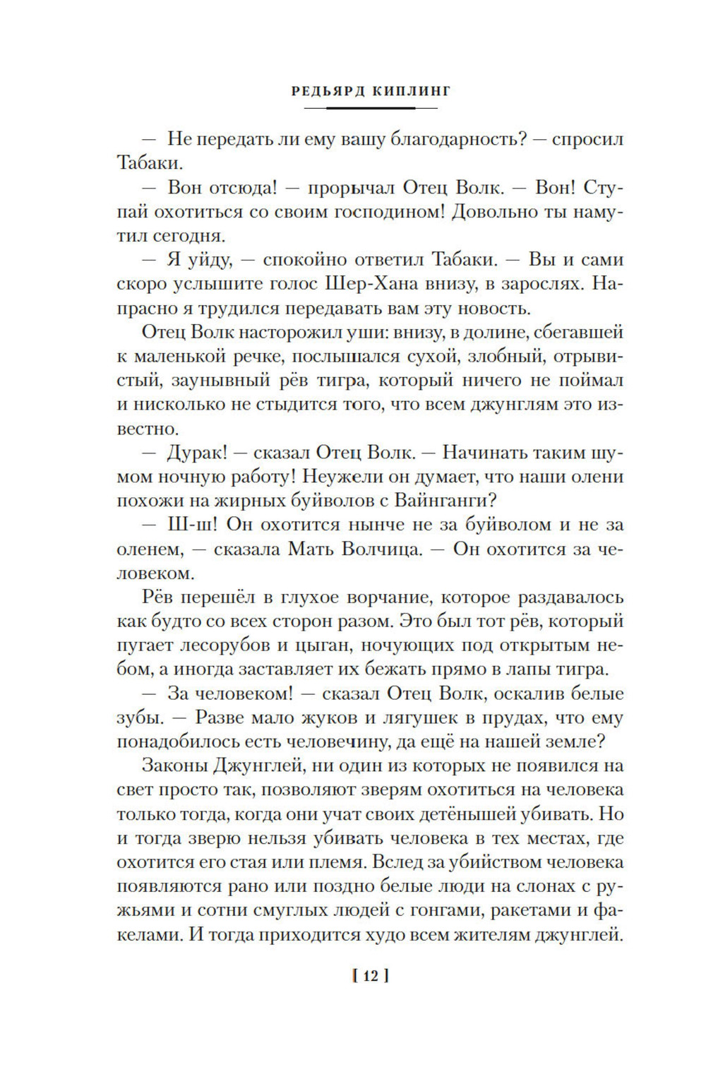 Редьярд Киплинг - всемирно известный писатель, поэт и новеллист, первый англичанин, получивший Нобелевскую премию по литературе. При этом Киплинг знал о джунглях не понаслышке. Первые пять лет жизни он с родителями провёл в Индии и навсегда полюбил эту удивительную страну. От няньки-индианки, будучи ребёнком, Редьярд услышал первые сказки и усвоил новые слова, прежде всего названия растений и животных. Хатхи - слон, Бандар - обезьяна, Маугли - лягушонок. Эти имена встречаются в легендарных «Книгах Джунглей», в которых собраны все рассказы о Маугли - мальчике, воспитанном в волчьей стае, - о его друзьях и наставниках. Немало необычных имён и в сказках об отважном Рикки-Тикки-Тави, своенравном Мотыльке и хитрой Кошке, которая гуляла сама по себе. В настоящий сборник вошли «Книга Джунглей», «Вторая Книга Джунглей» и сборник сказок о животных «Просто сказки». Все тексты публикуются без сокращений, включая оригинальные эпиграфы-стихотворения, и сопровождаются уникальными рисунками, выполненными автором и его отцом, художником Джоном Локвудом Киплингом. Издание также украшают цветные иллюстрации американского художника Джозефа М. Глисона.| Издательство | Азбука |
