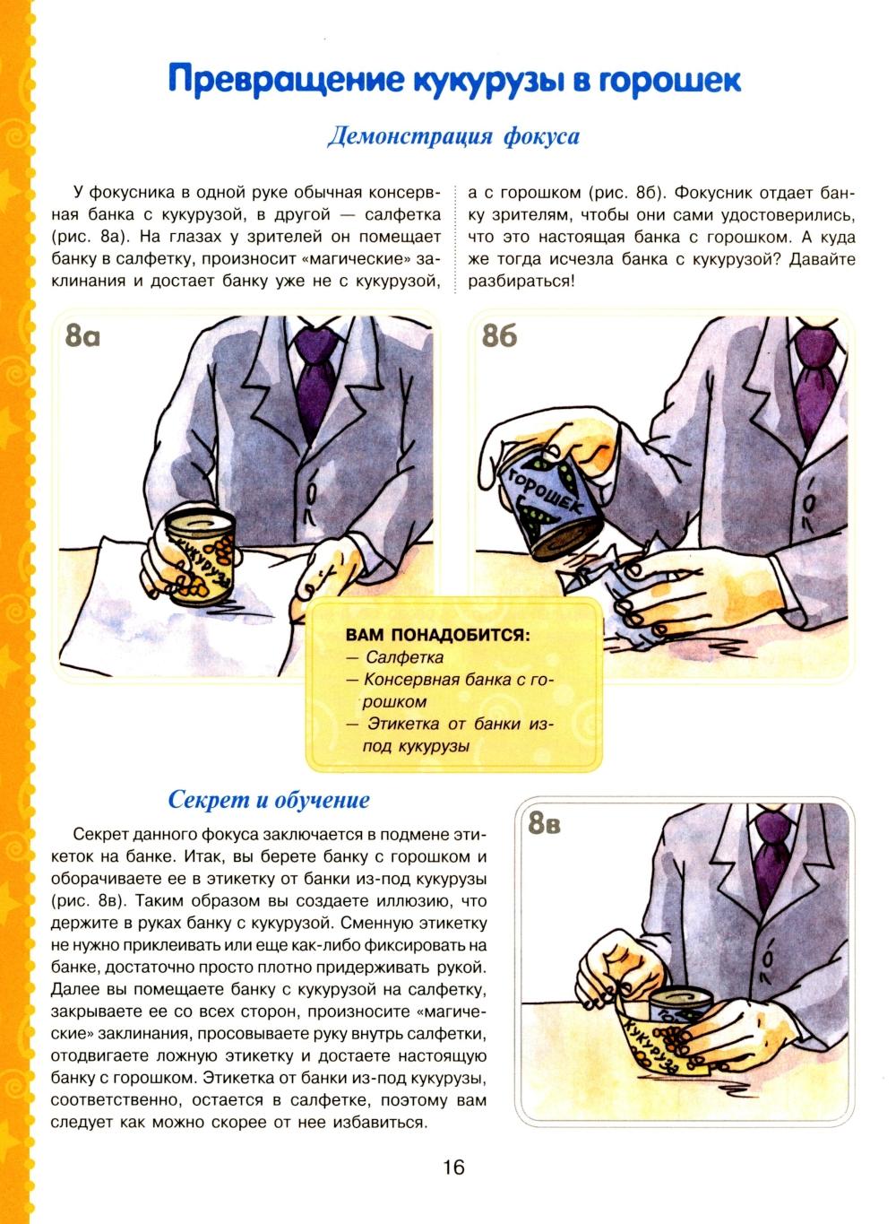 Познавательная книга «Фокусов и трюков» для детей станет отличным развлечением и полезным занятием для детского досуга. Книжка подойдет на подарок мальчику и девочке на 23 февраля, 8 марта. Книга представляет собой настоящую энциклопедию фокусов, предназначенную для детей от 6 лет. В книжке содержится множество интересной информации о фокусах и трюках, которые школьники смогут с легкостью освоить. Одним из главных преимуществ пособия являются подробные иллюстрации, благодаря которым информация становится понятней. Книга фокусов идеально подходит как для мальчиков, так и для девочек, и может стать отличным подарком. Энциклопедия помогает ребенку освоить новые навыки и улучшить память, ловкость рук и абстрактное мышление. В детской книжке подросток найдет много интересных фокусов и трюков, которые помогут ему проводить время с пользой, развивая свои способности и умения.| Издательство | Харвест |